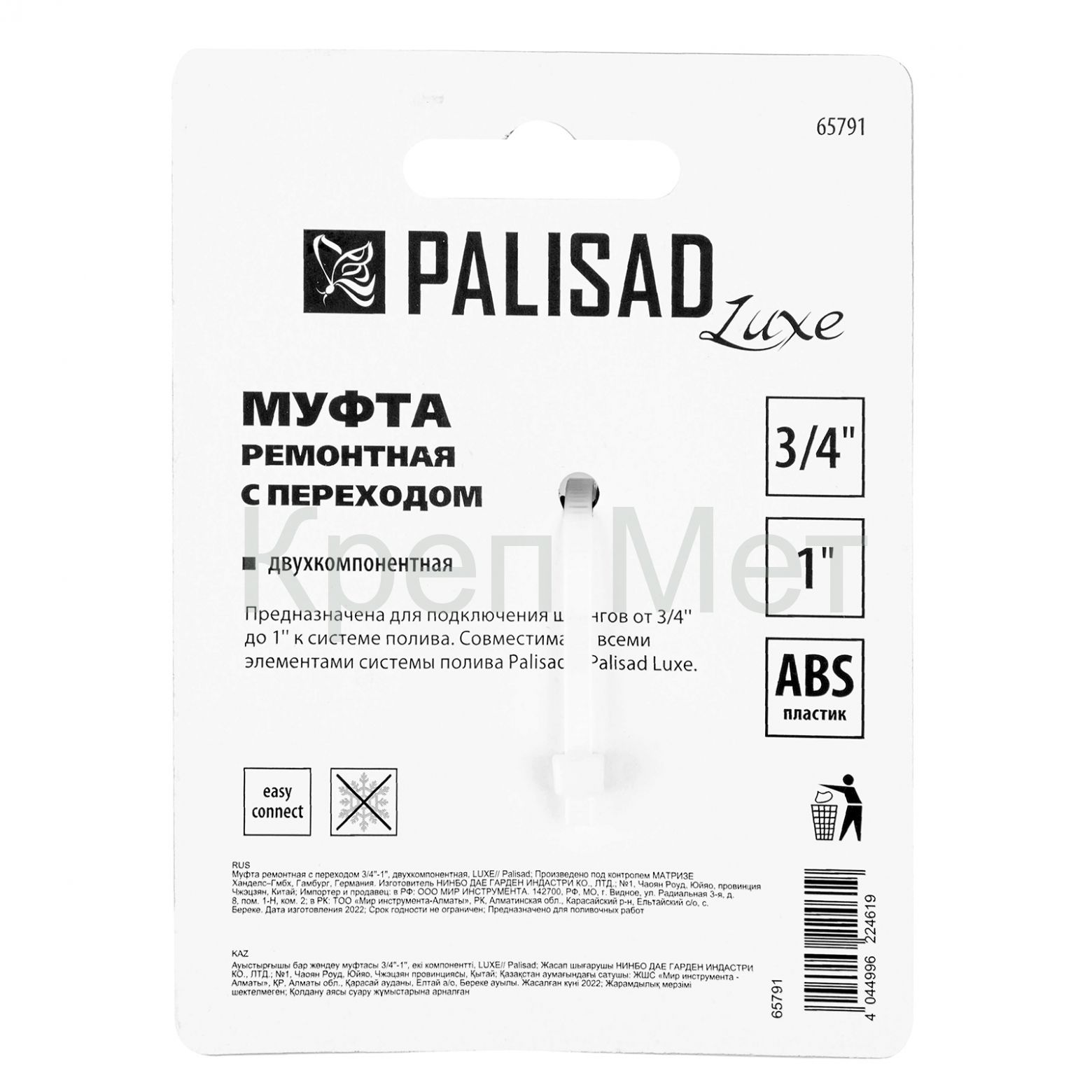 Ремонтная муфта Palisad Luxe 65791 в двухкомпонентном корпусе, с переходом 3/4"-1", позволяет создать оросительную систему из шлангов разного размера. С помощью муфты можно удлинить линию для полива больших территорий.