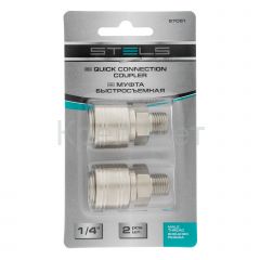 - Муфта универсальная быстросъемная ("мама") 1/4, внешняя резьба, 2 шт, Stels