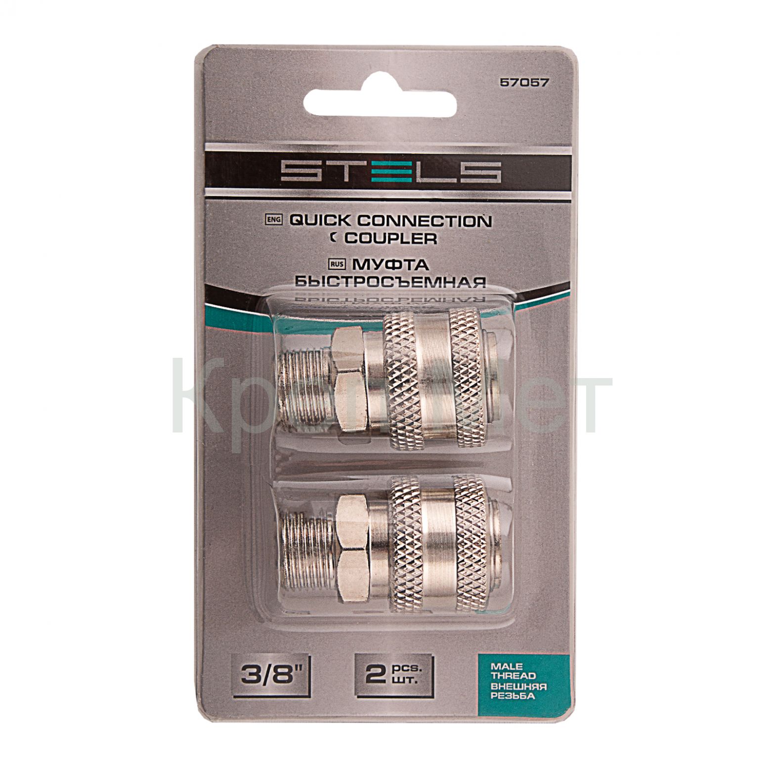 Муфта универсальная быстросъемная ("мама") 3/8, внешняя резьба, 2 шт, Stels