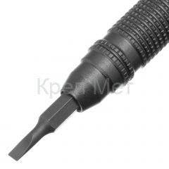 - Удобная эксплуатация — вращающийся затыльник позволяет поворачивать отвертку перебором пальцев.