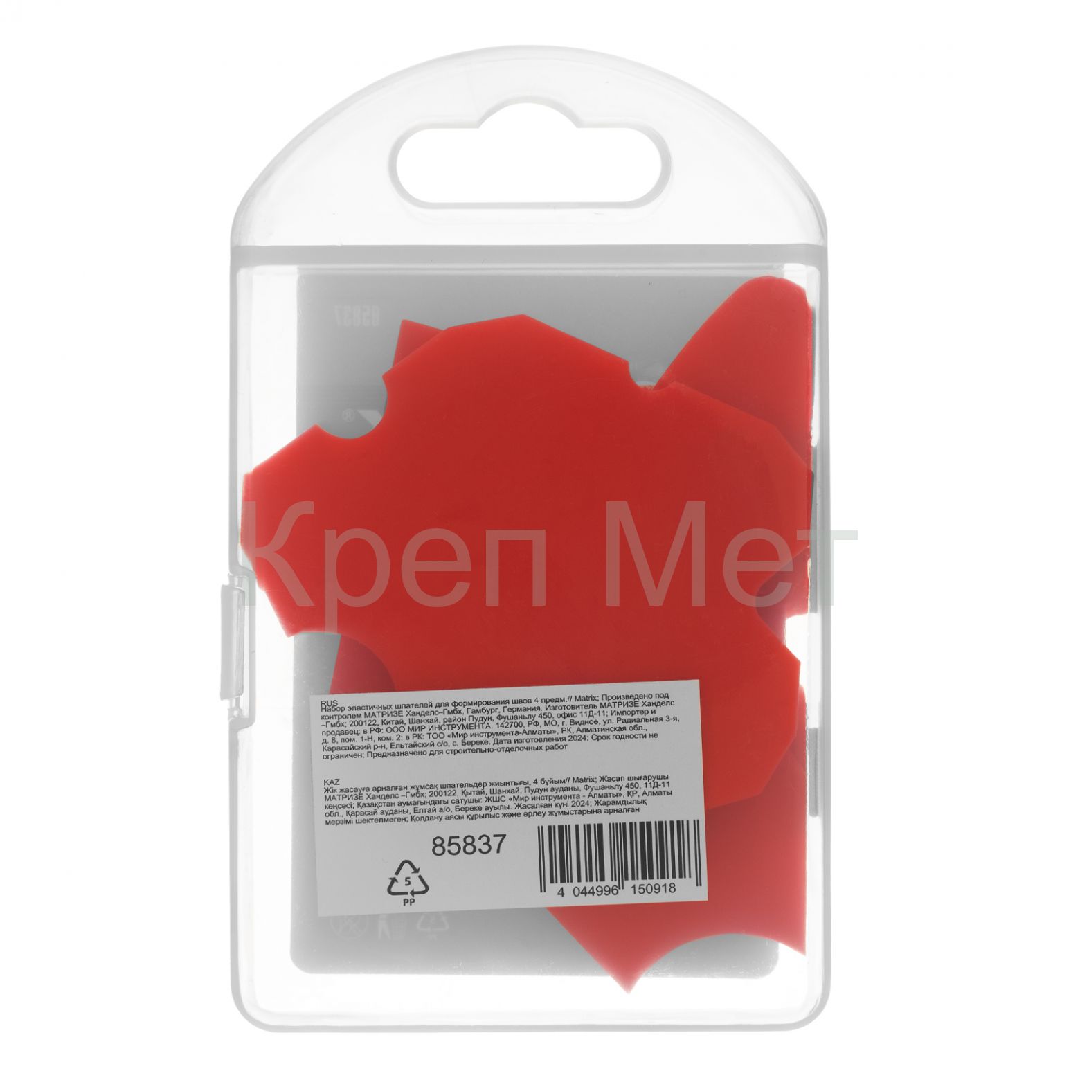 Набор из 4 эластичных шпателей Matrix 85837 используется для формирования аккуратных межплиточных швов и удаления излишков герметика. Универсальные шпатели имеют множество профилей для создания швов различного размера и формы.