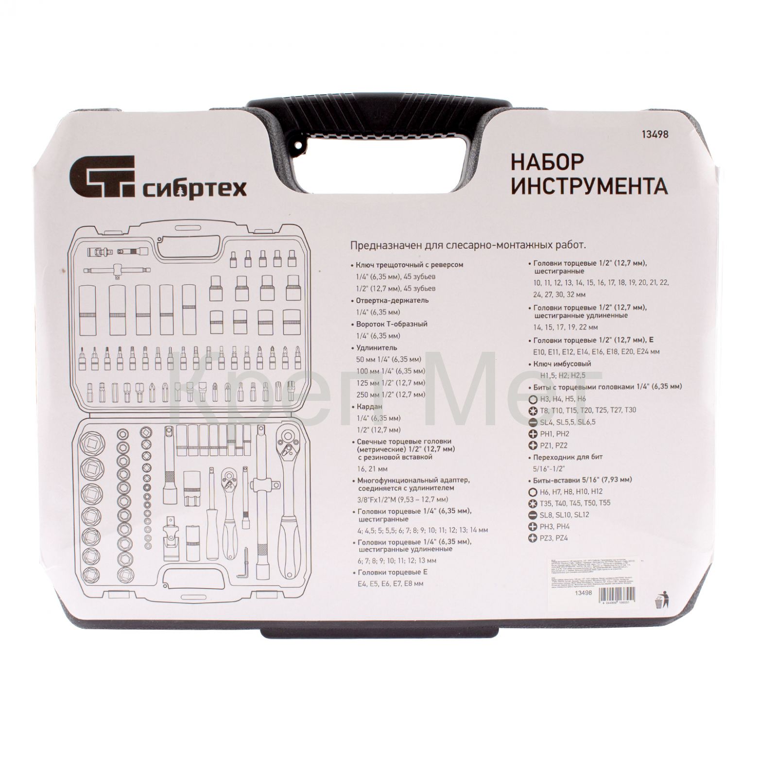 - Набор инструмента, 1/2", 1/4", пластиковый кейс, 108 предметов Сибртех