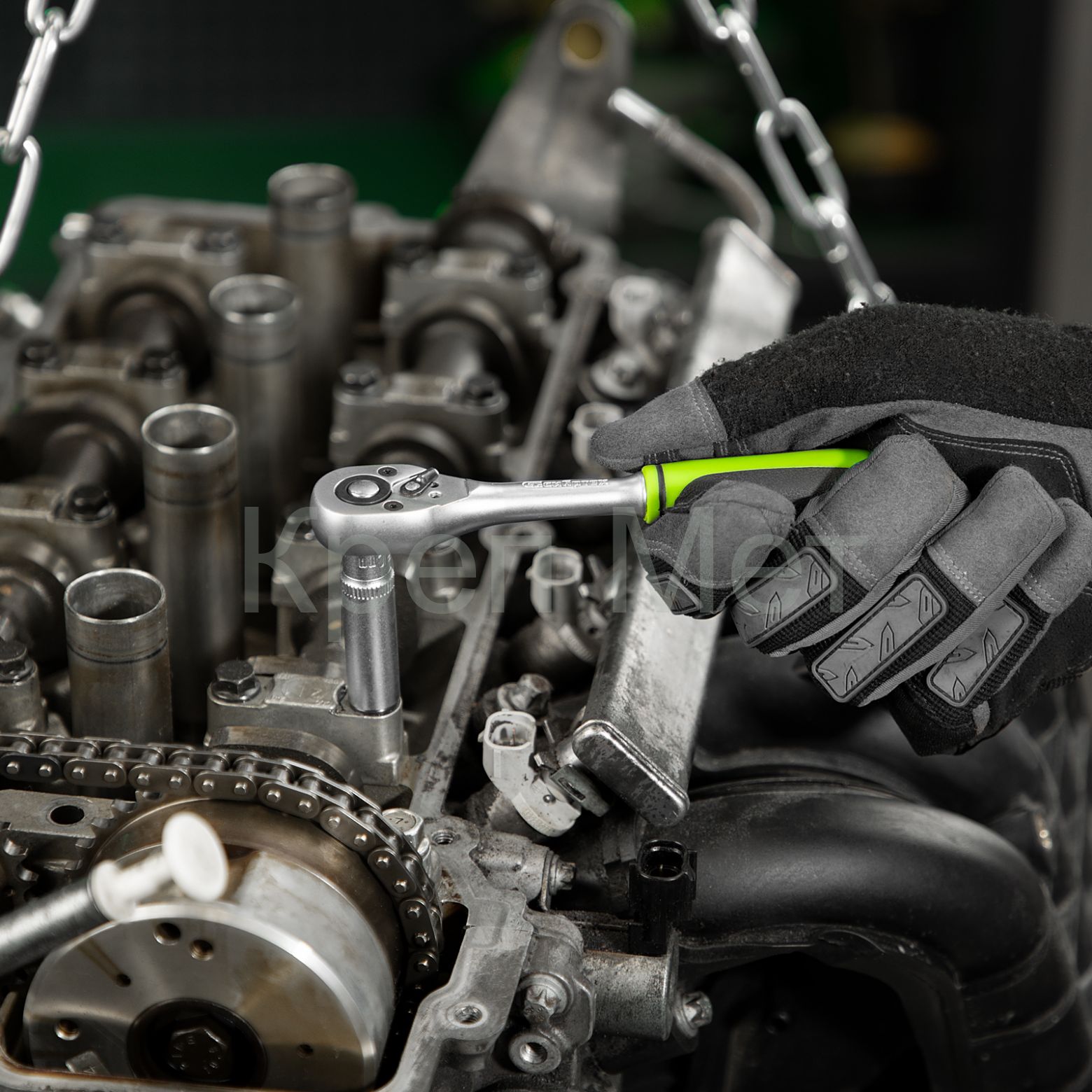 - Быстрый переход от монтажа к демонтажу — флажковые переключатели на трещоточных ключах позволяют мгновенно менять направление вращения.