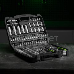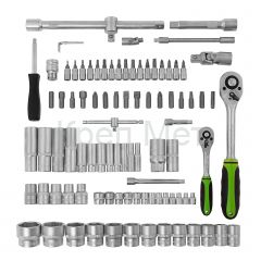 Набор инструмента Сибртех 13499 состоит из 94 предметов с присоединительными размерами 1/2" и 1/4", упакованных в пластиковый кейс. Предназначен для ремонта и обслуживания автомобилей, а также выполнения бытовых работ. Имеющиеся в комплекте насадки рассчитаны на крепеж с различными типами профилей и шлицев, включая HEX и TORX. Набор будет полезен автолюбителю и профессиональному мастеру.