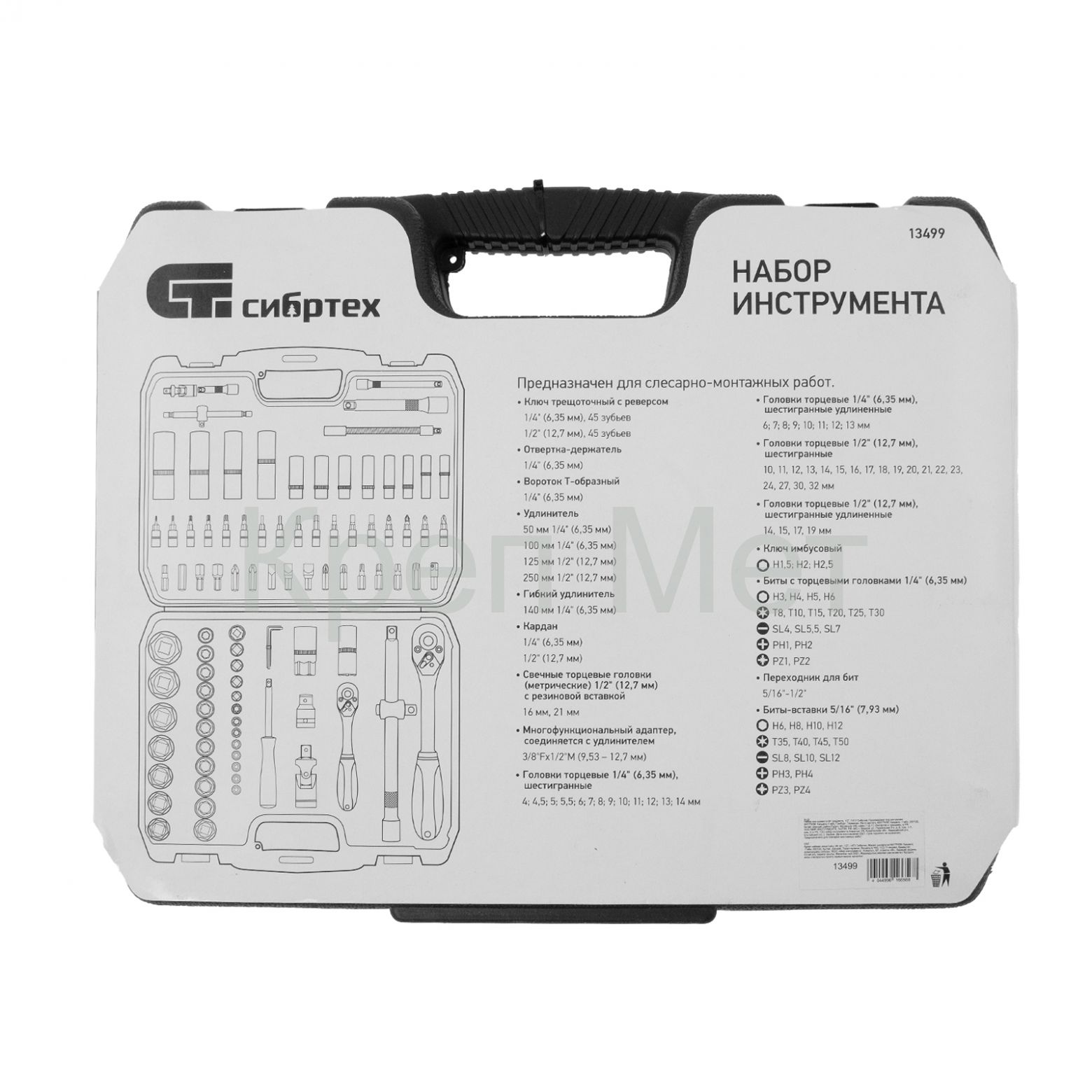 - Набор инструмента, 1/2", 1/4", пластиковый кейс,94 предмета Сибртех
