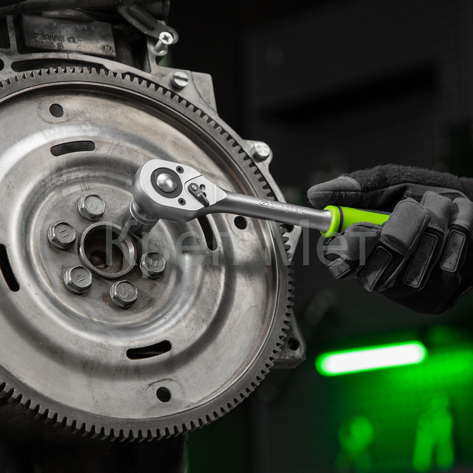 - Быстрый переход от монтажа к демонтажу — флажковые переключатели на трещоточных ключах позволяют мгновенно менять направление вращения.