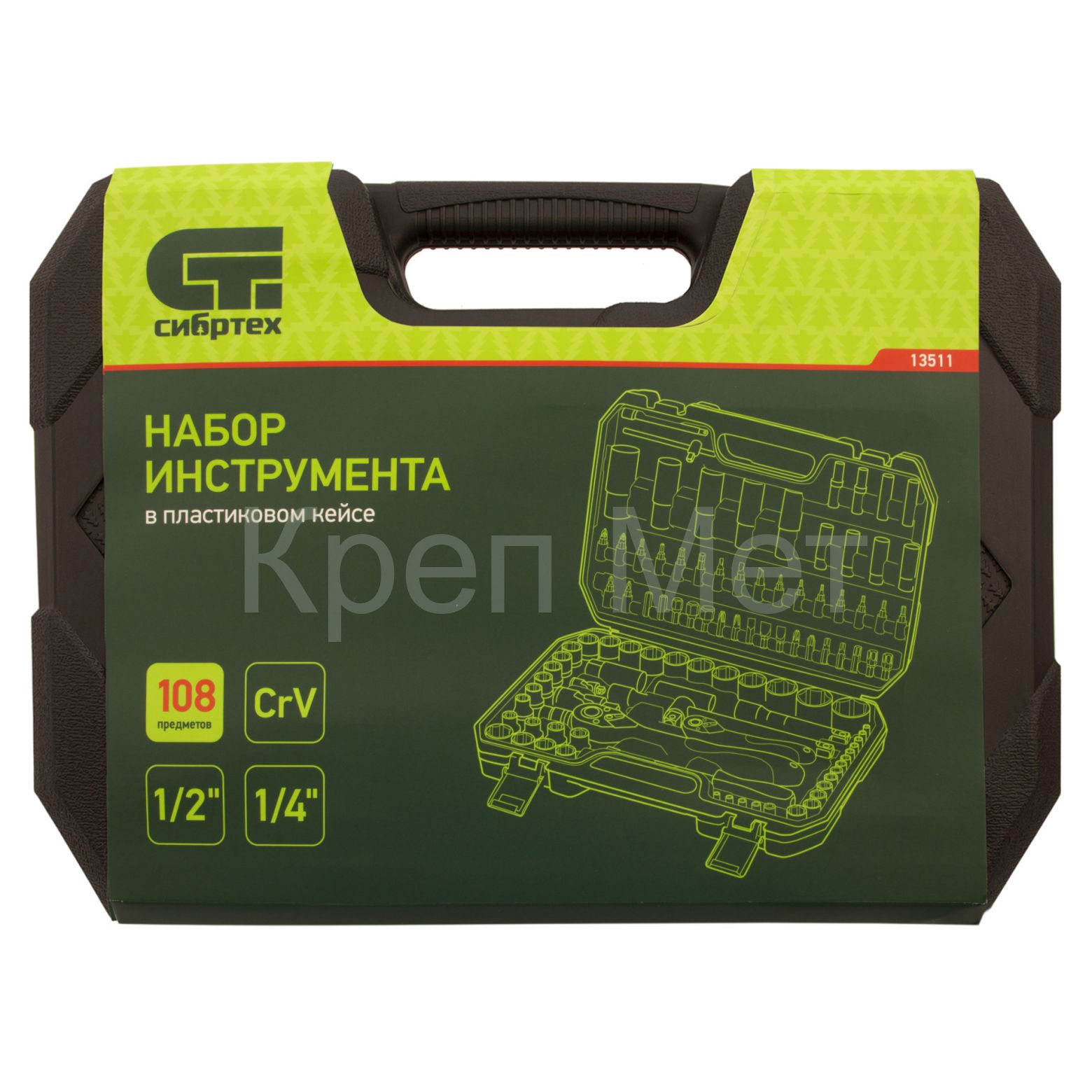 Набор инструментов 108 предметов, CrV, 1/2", 1/4" Сибртех