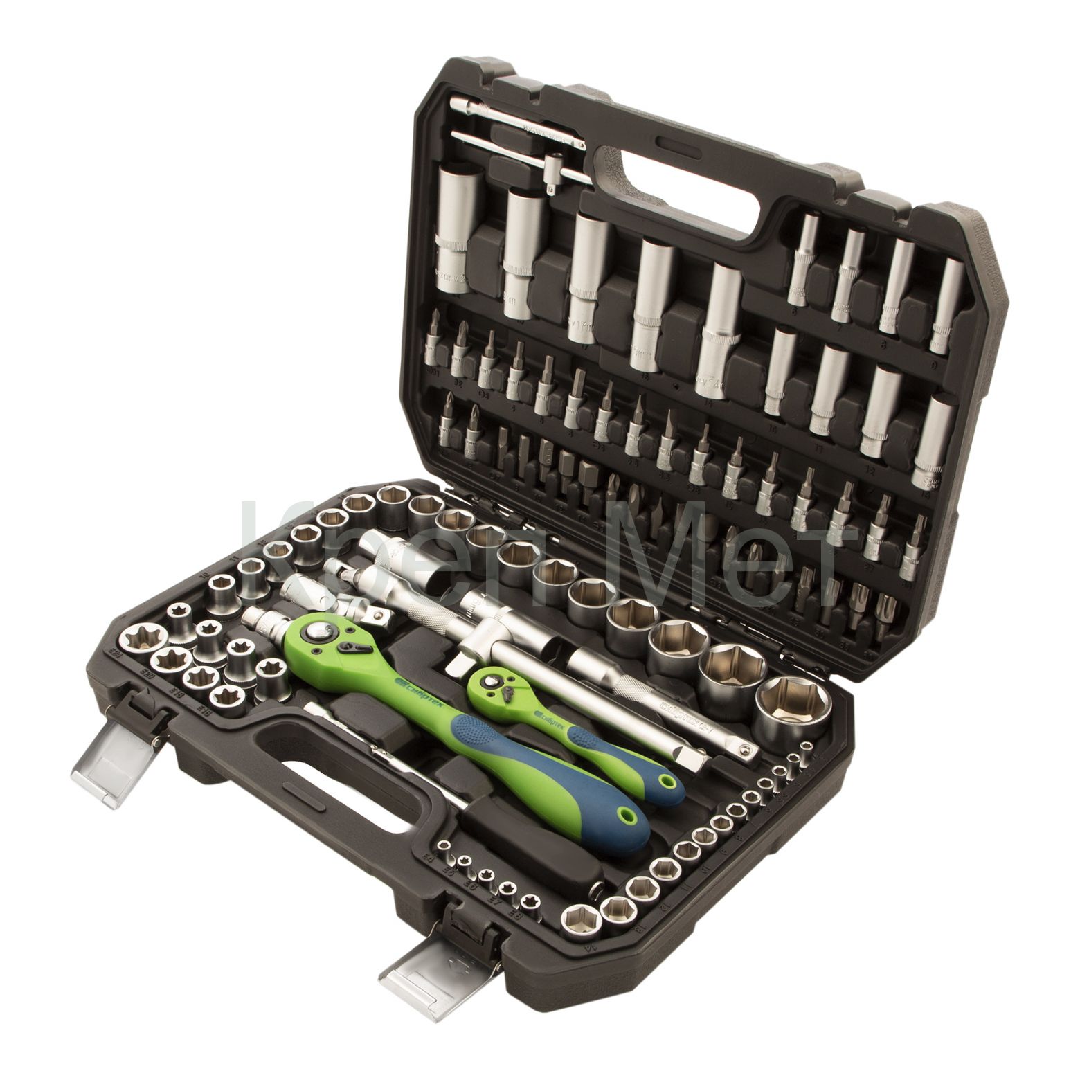 - Прочность и износостойкость — элементы набора изготовлены из хромованадиевой стали, корпус каждого трещоточного ключа имеет защитное покрытие.