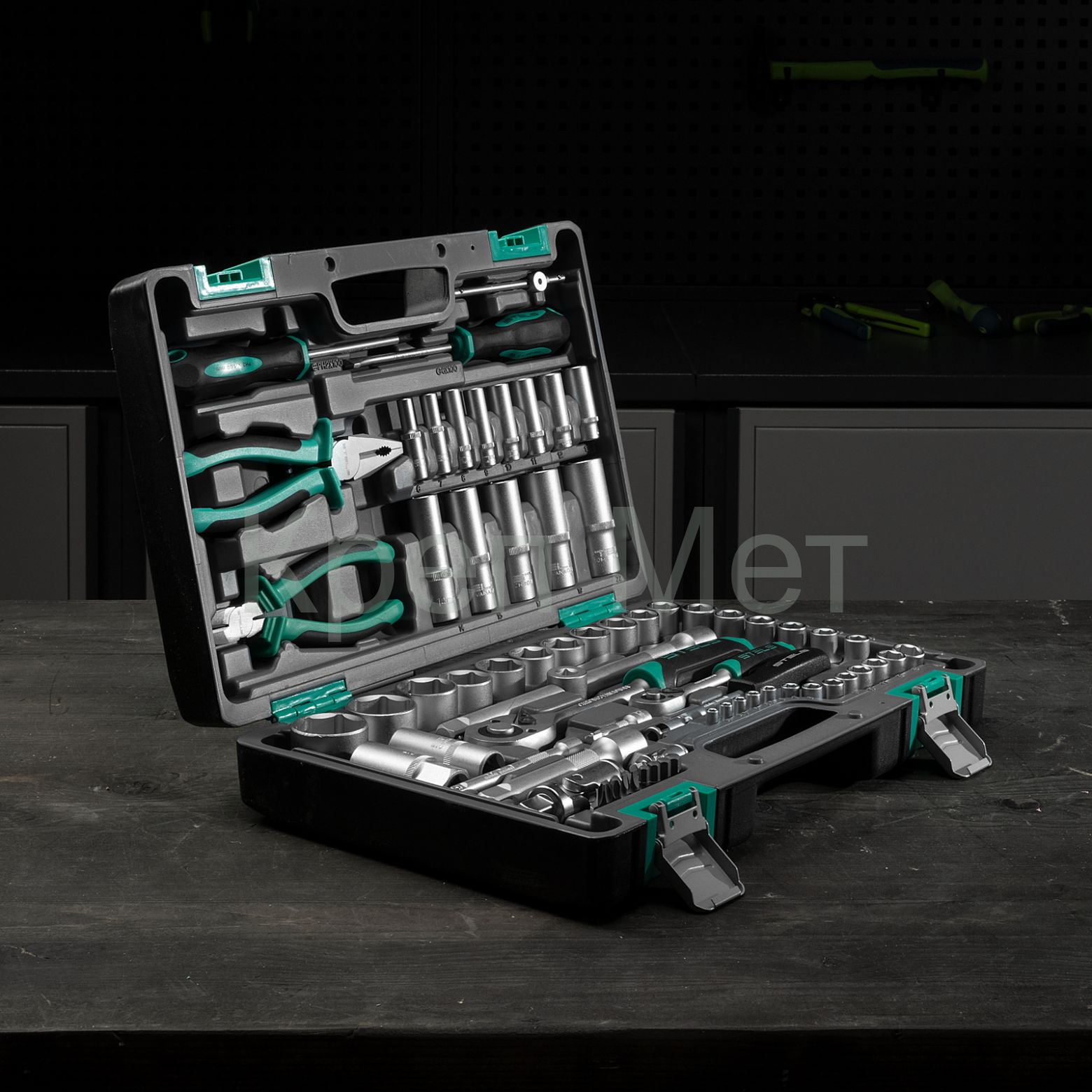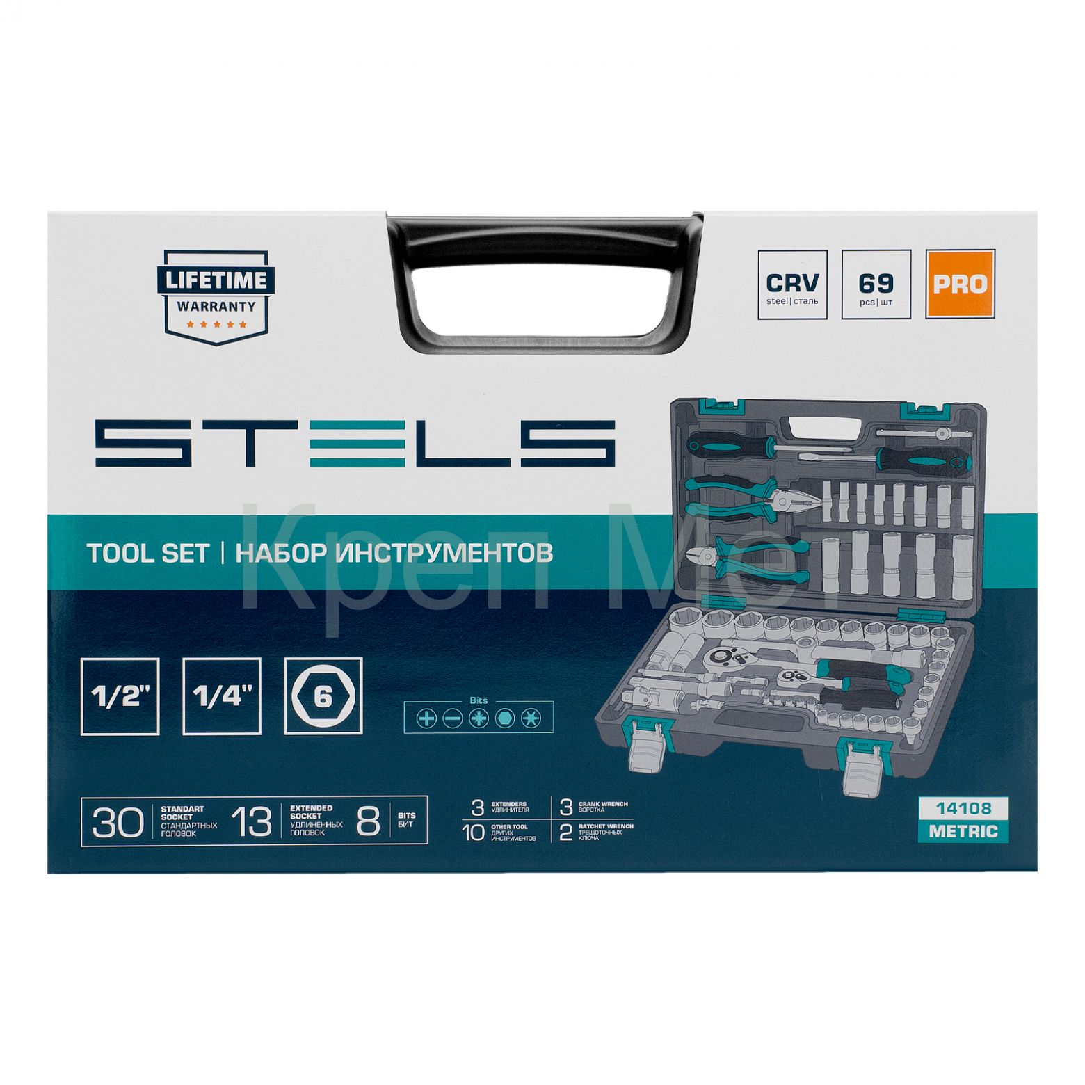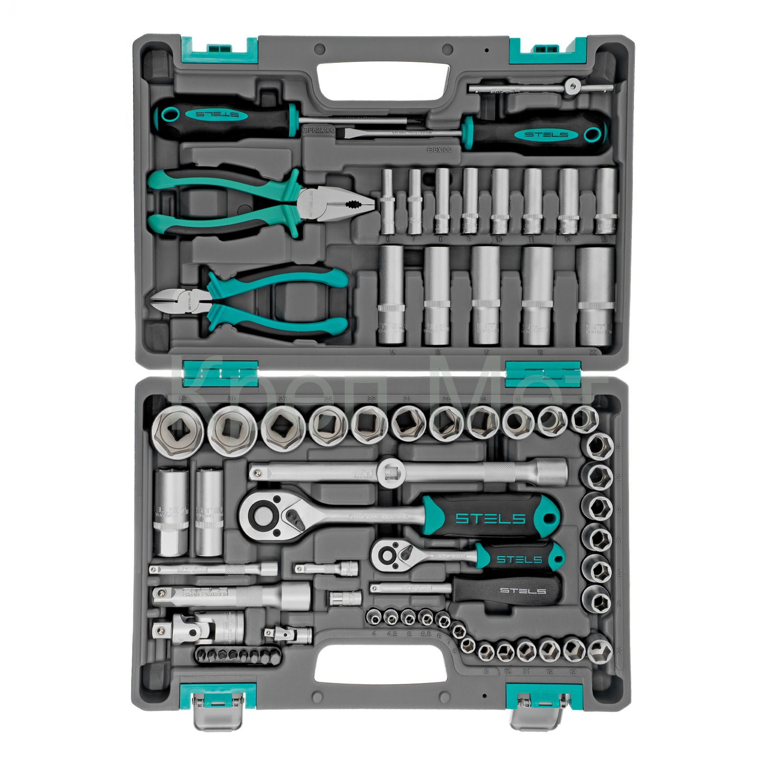 Набор инструментов, 1/2", 1/4", CrV, пластиковый кейс 69 предметов Stels