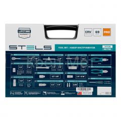 - Набор инструментов, 1/2", 1/4", CrV, пластиковый кейс 69 предметов Stels