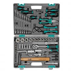 Набор инструментов Stels 14104 в ударопрочным пластиковом кейсе состоит из 76 предметов с присоединительными квадратами 1/2″ и 1/4″, из стали CrV и S2, и предназначен для выполнения слесарно-монтажных работ. Включает инструменты и насадки для работы с резьбовыми крепежами, а также удлинители и т-образный вороток, облегчающие работу в труднодоступных местах. Молоток, плоскогубцы и переставные клещи расширяют возможности применения набора. Набор предназначен для профессионального использования в автомастерской, будет полезен и для решения бытовых задач.
