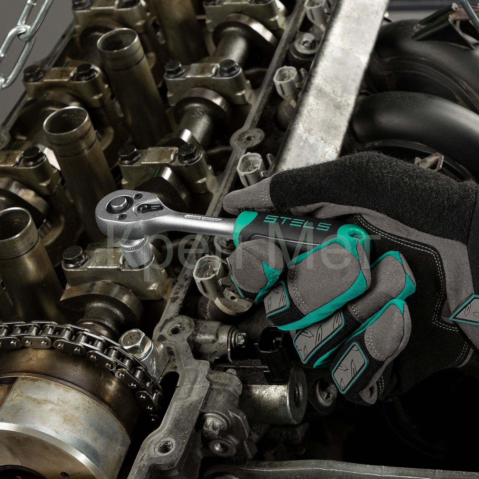 - Комфортная работа в труднодоступных местах — в набор входят ключи-трещотки с 72 зубьями, рабочий шаг составляет всего 5°.