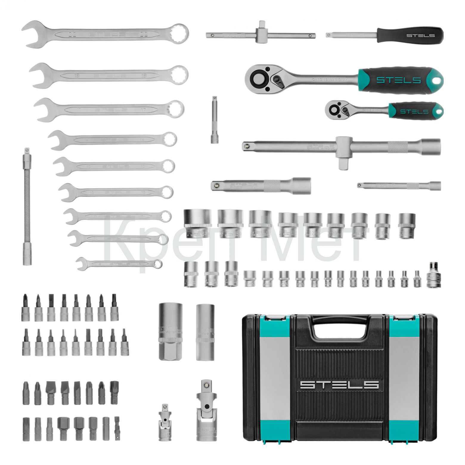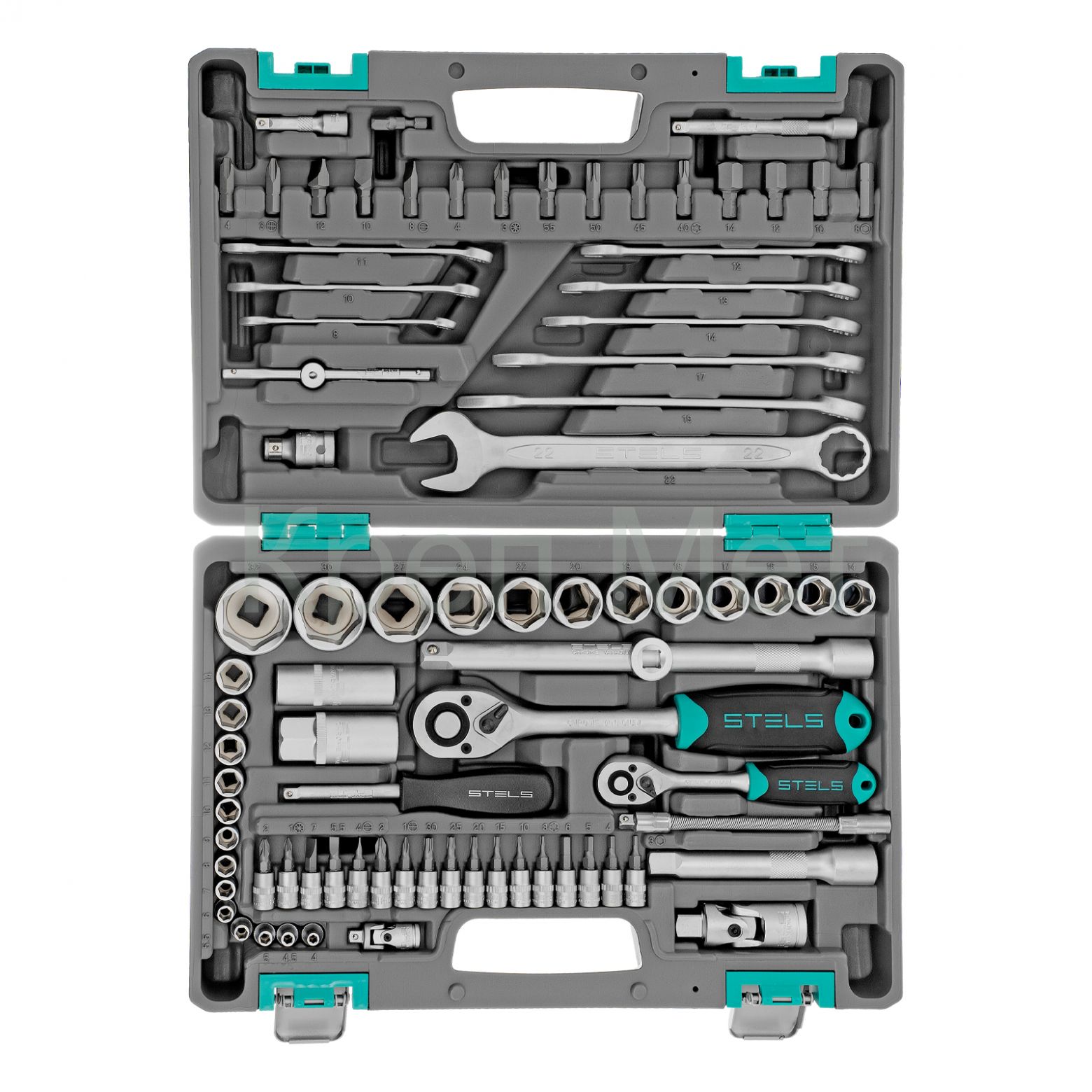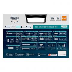 - Набор инструментов, 1/2", 1/4", CrV, пластиковый кейс 82 предмета Stels