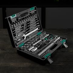 Набор инструментов Stels 14105 в ударопрочным пластиковом кейсе состоит из 82 предметов с присоединительными квадратами 1/2″ и 1/4″, из стали CrV и S2, и предназначен для выполнения слесарно-монтажных работ. Включает инструменты и насадки для работы с резьбовыми крепежами, а также удлинители (в том числе гибкий) и т-образные воротки, облегчающие работу в труднодоступных местах. Набор предназначен для профессионального использования в автомастерской, будет полезен и для решения бытовых задач.
