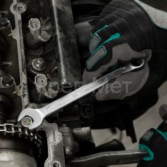 - Комфортная работа в труднодоступных местах — в набор входят ключи-трещотки с 72 зубьями, рабочий шаг составляет всего 5°.