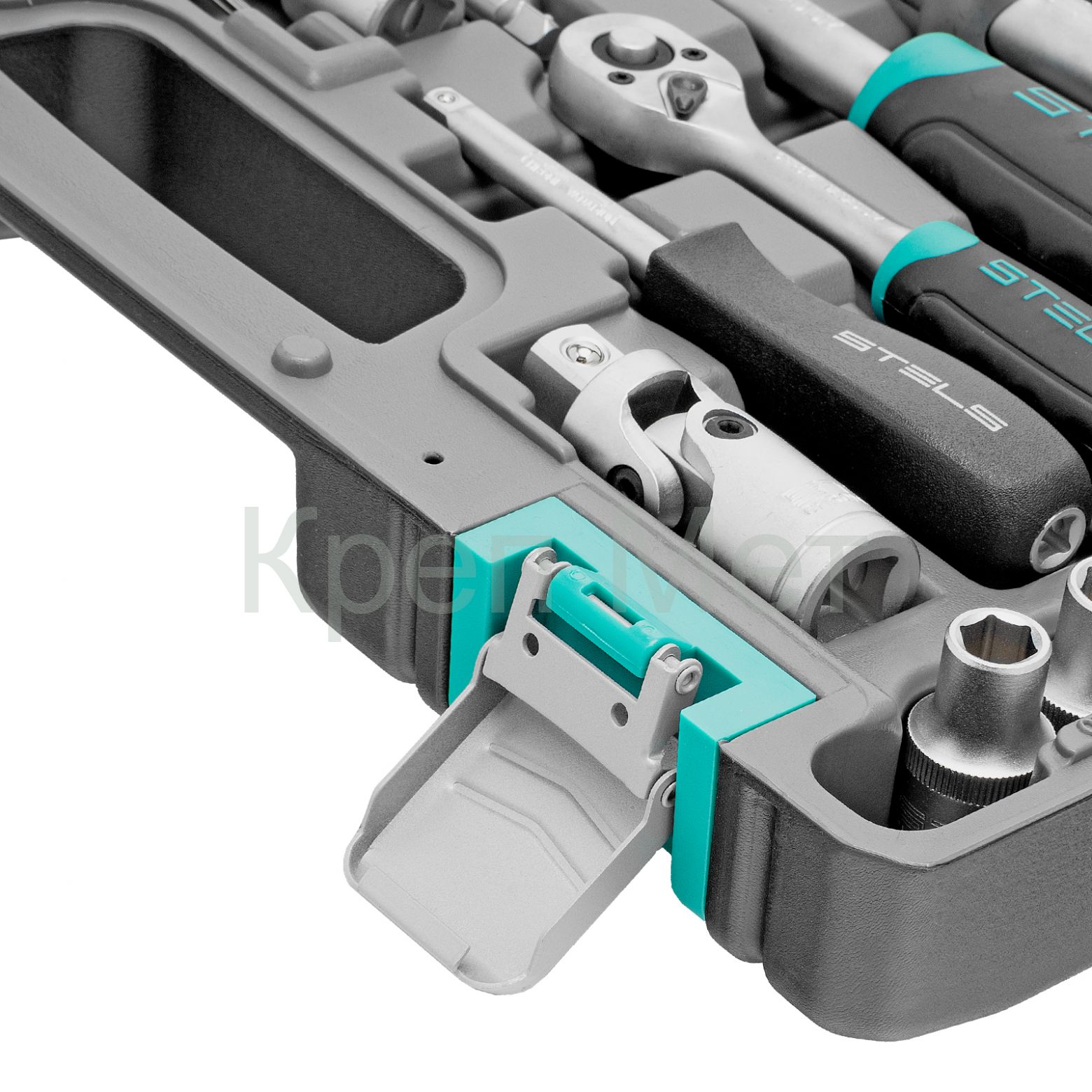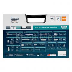 - Набор инструментов, 1/2", 1/4", CrV, пластиковый кейс 94 предмета Stels