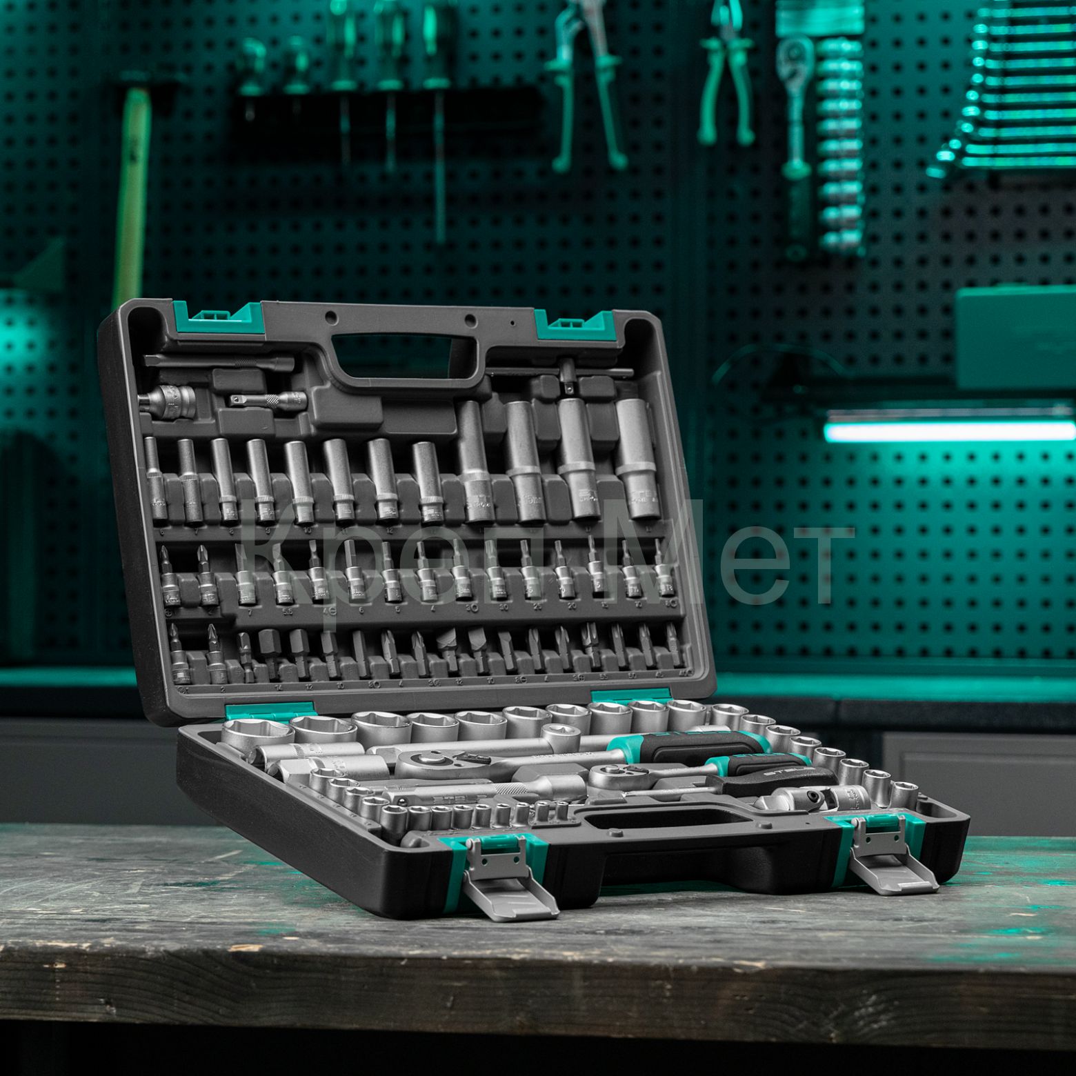 - Комфортная работа в труднодоступных местах — в набор входят ключи-трещотки с 72 зубьями, рабочий шаг составляет всего 5°.