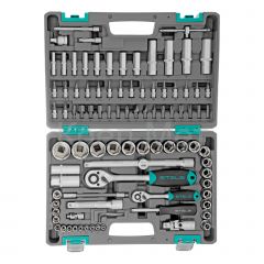 Набор инструментов Stels 14106 в ударопрочным пластиковом кейсе состоит из 94 предметов с присоединительными квадратами 1/2″ и 1/4″, из стали CrV и S2, и предназначен для выполнения слесарно-монтажных работ. Включает инструменты и насадки для работы с резьбовыми крепежами, а также удлинители (в том числе гибкий) и т-образный вороток, облегчающие работу в труднодоступных местах. Набор предназначен для профессионального использования в автомастерской, будет полезен и для решения бытовых задач.