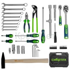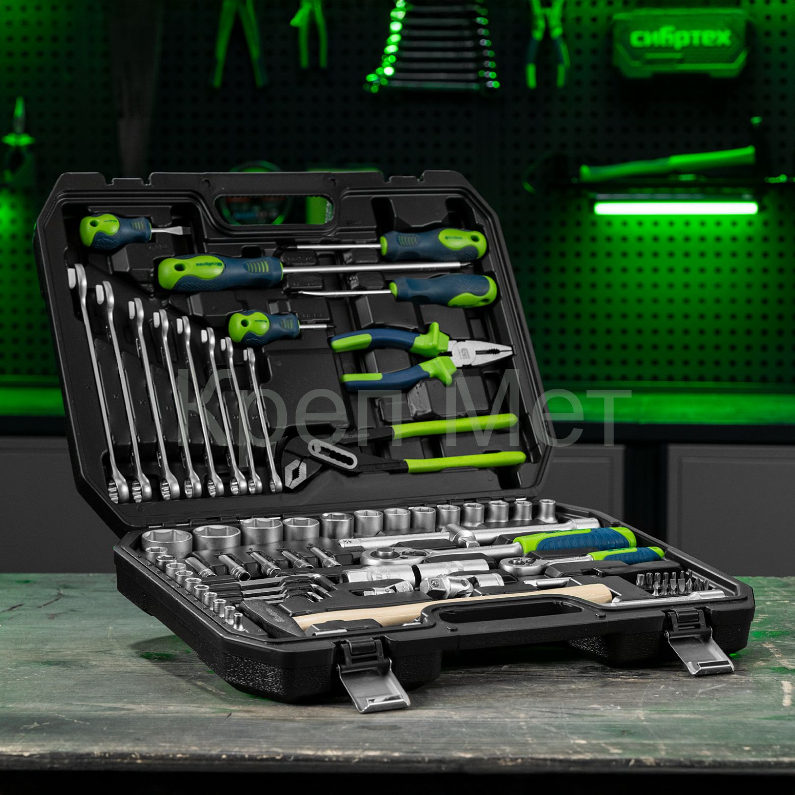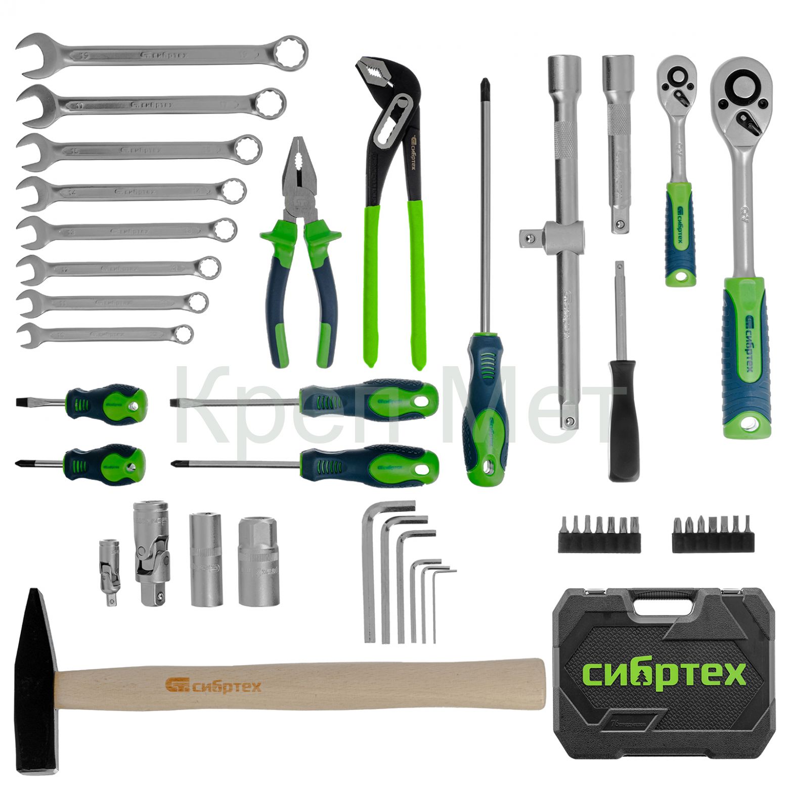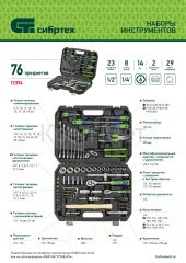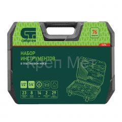 - Набор инструментов, 1/2", 1/4", пластиковый кейс 76 предметов Сибртех
