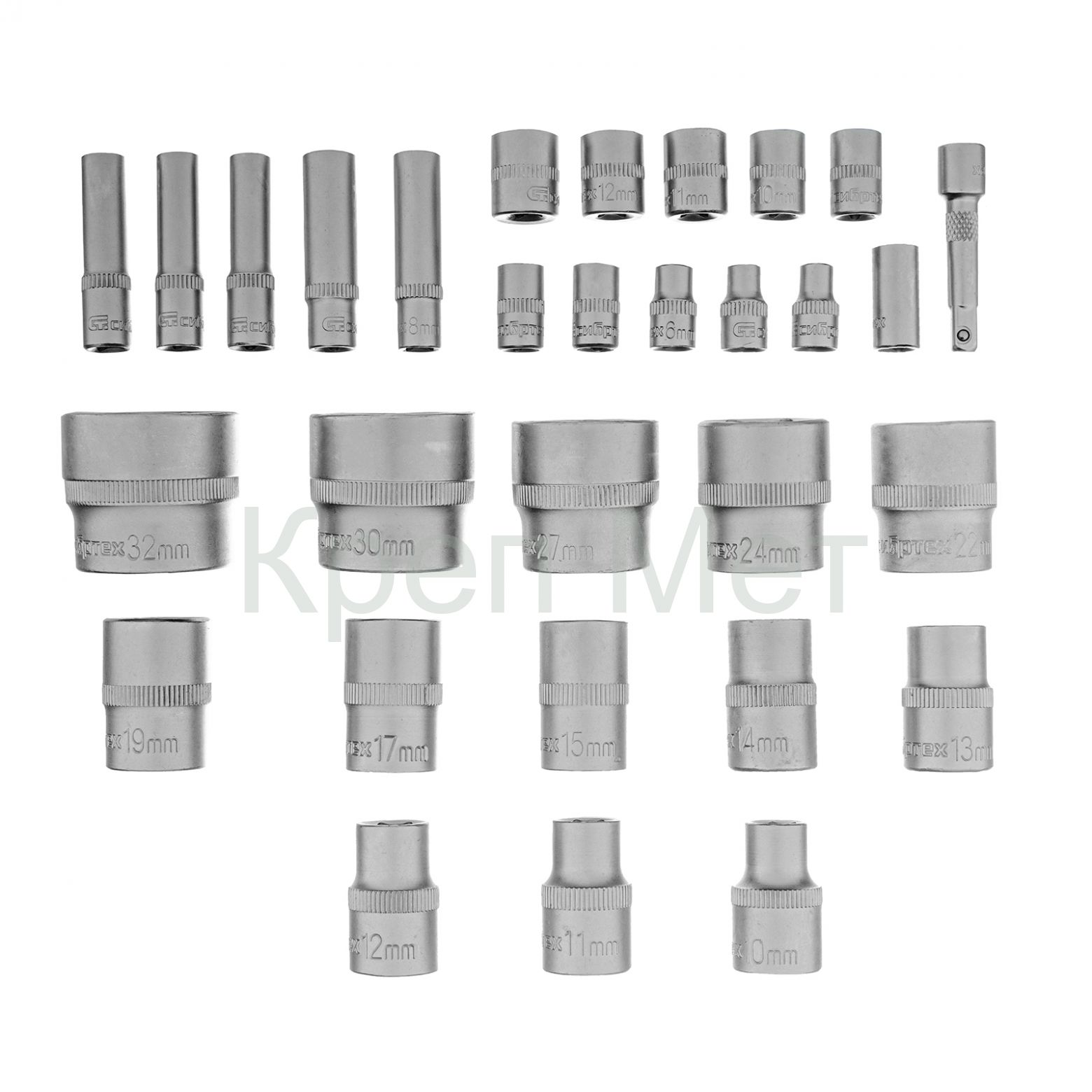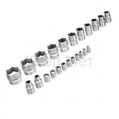 - Прочная фиксация — шариковый замок на трещотках, воротках, шарнирах и удлинителях надежно удерживает головки.