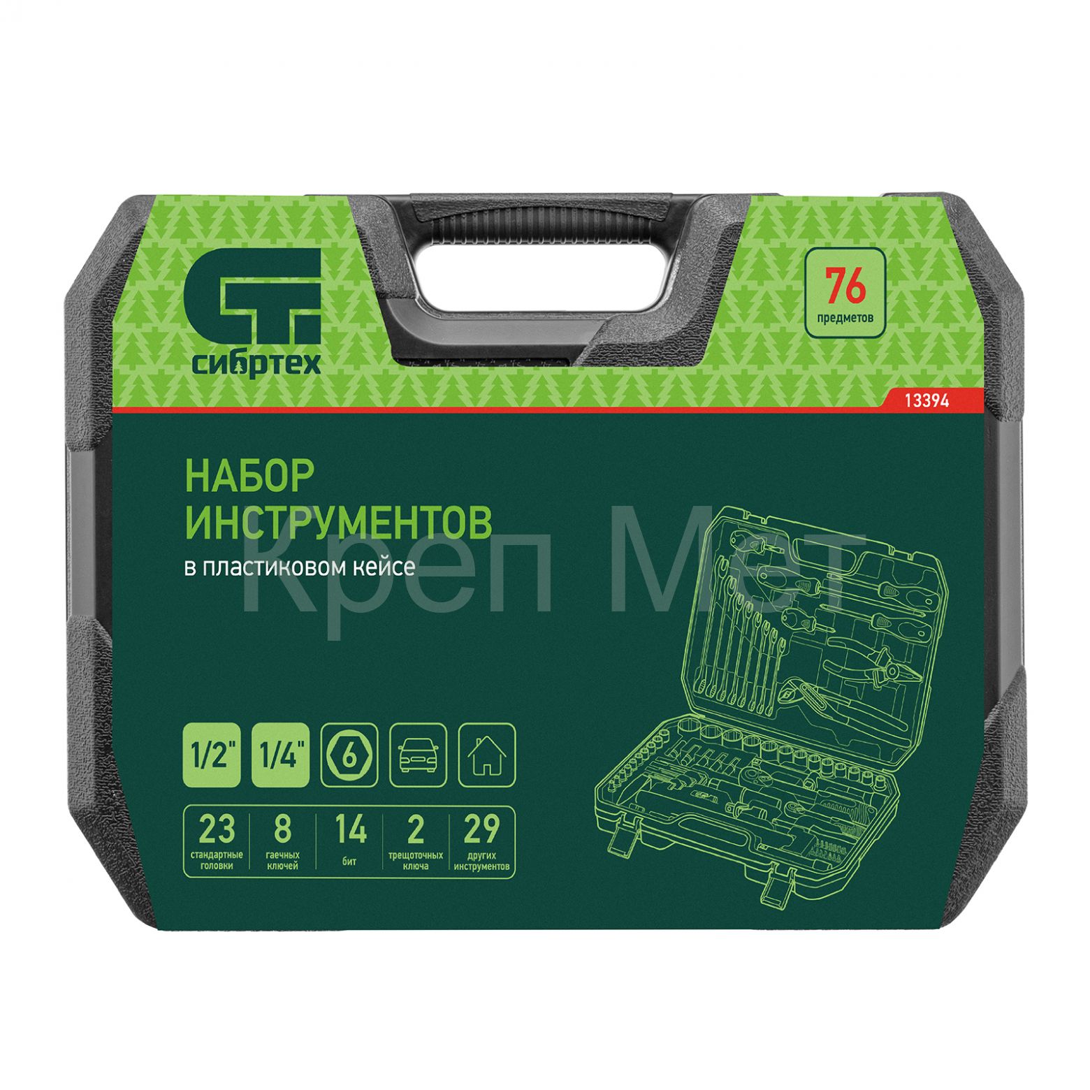 Набор инструментов, 1/2", 1/4", пластиковый кейс 76 предметов Сибртех