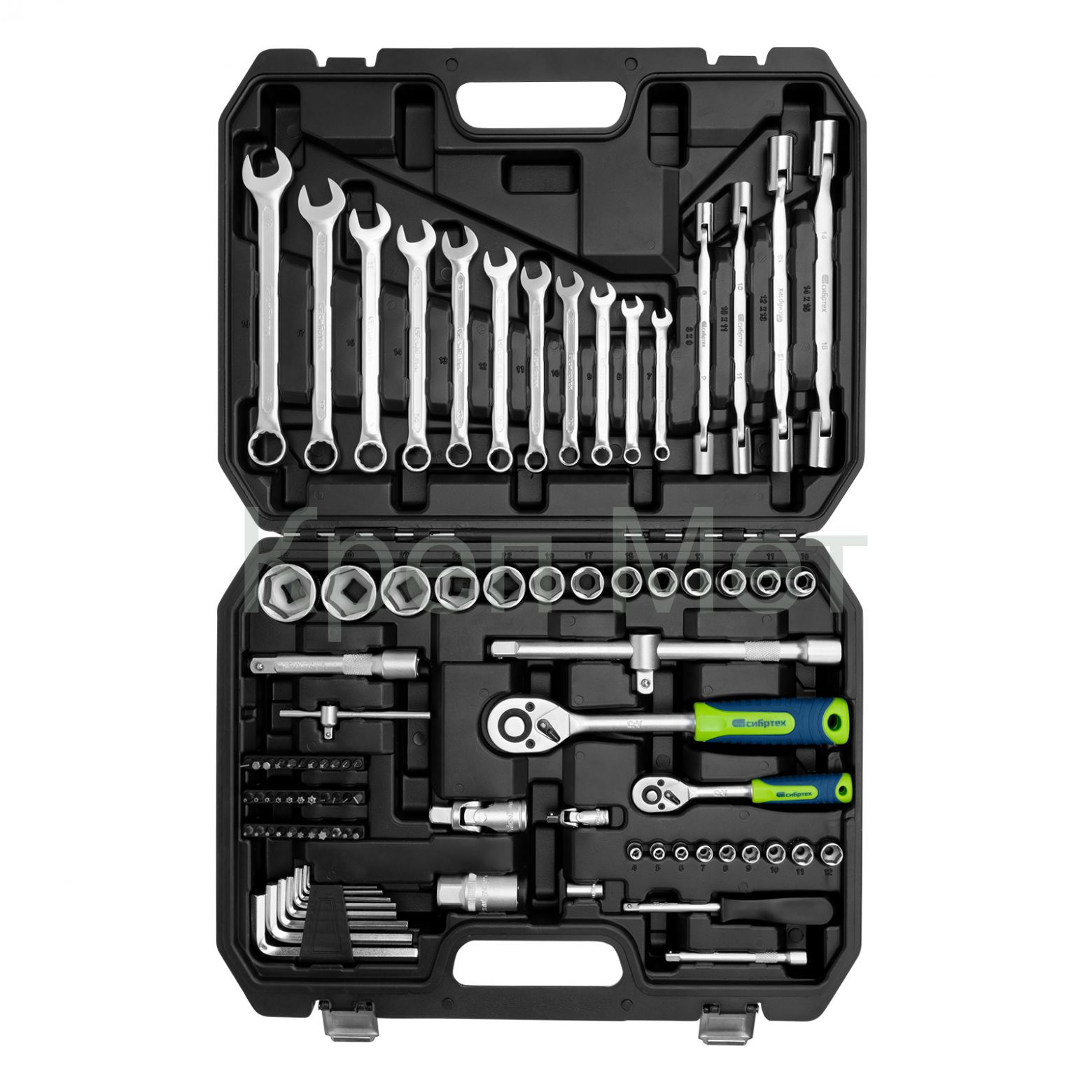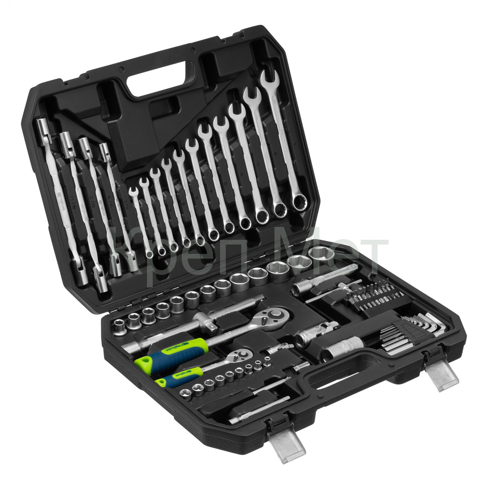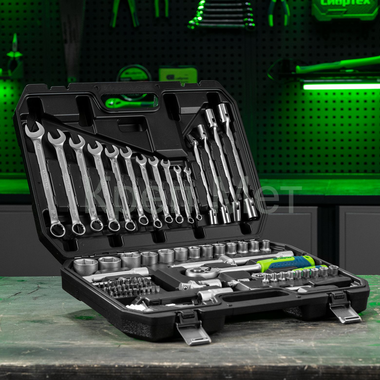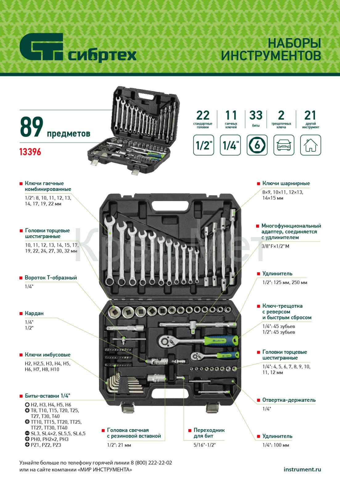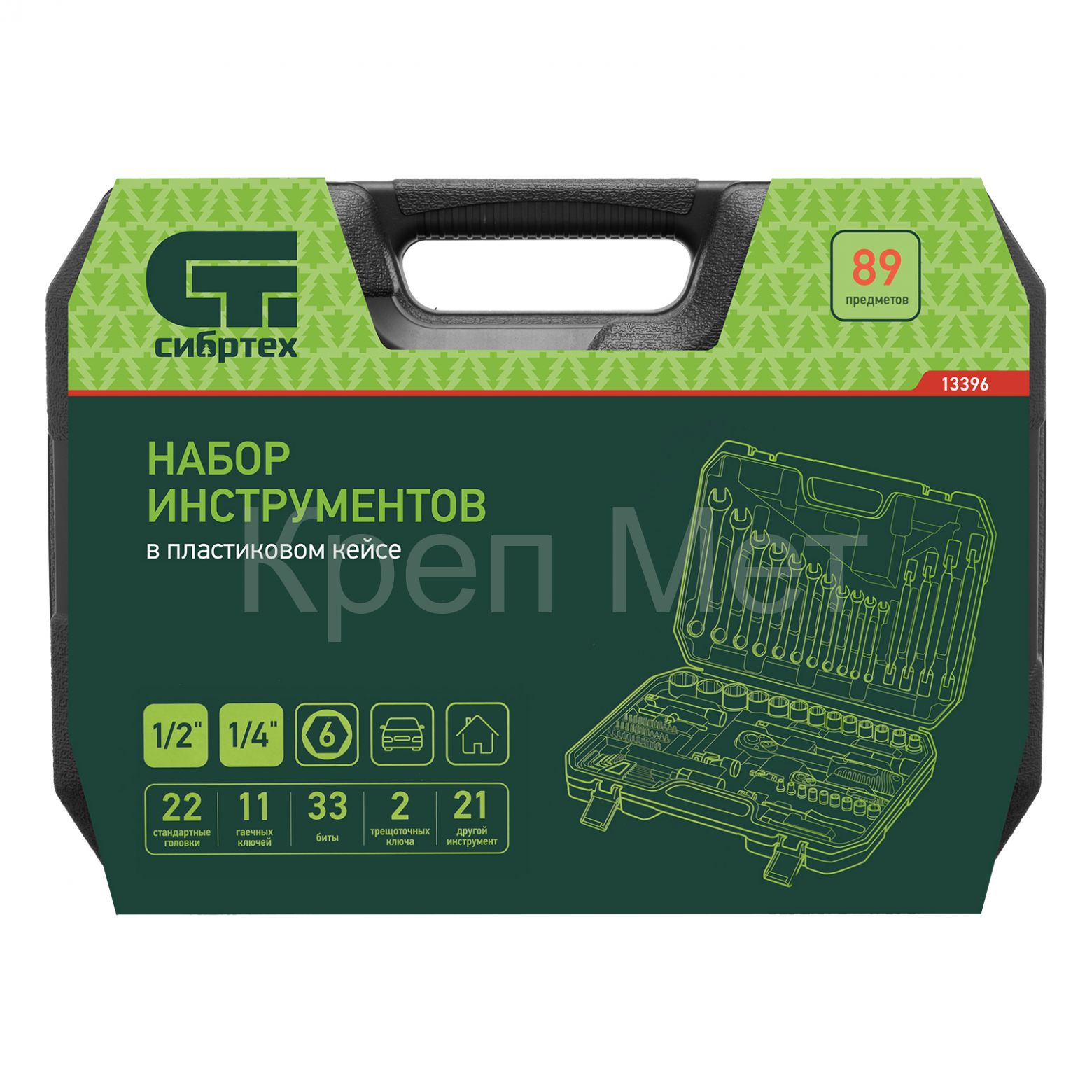 - Набор инструментов, 1/2", 1/4", пластиковый кейс 89 предметов Сибртех
