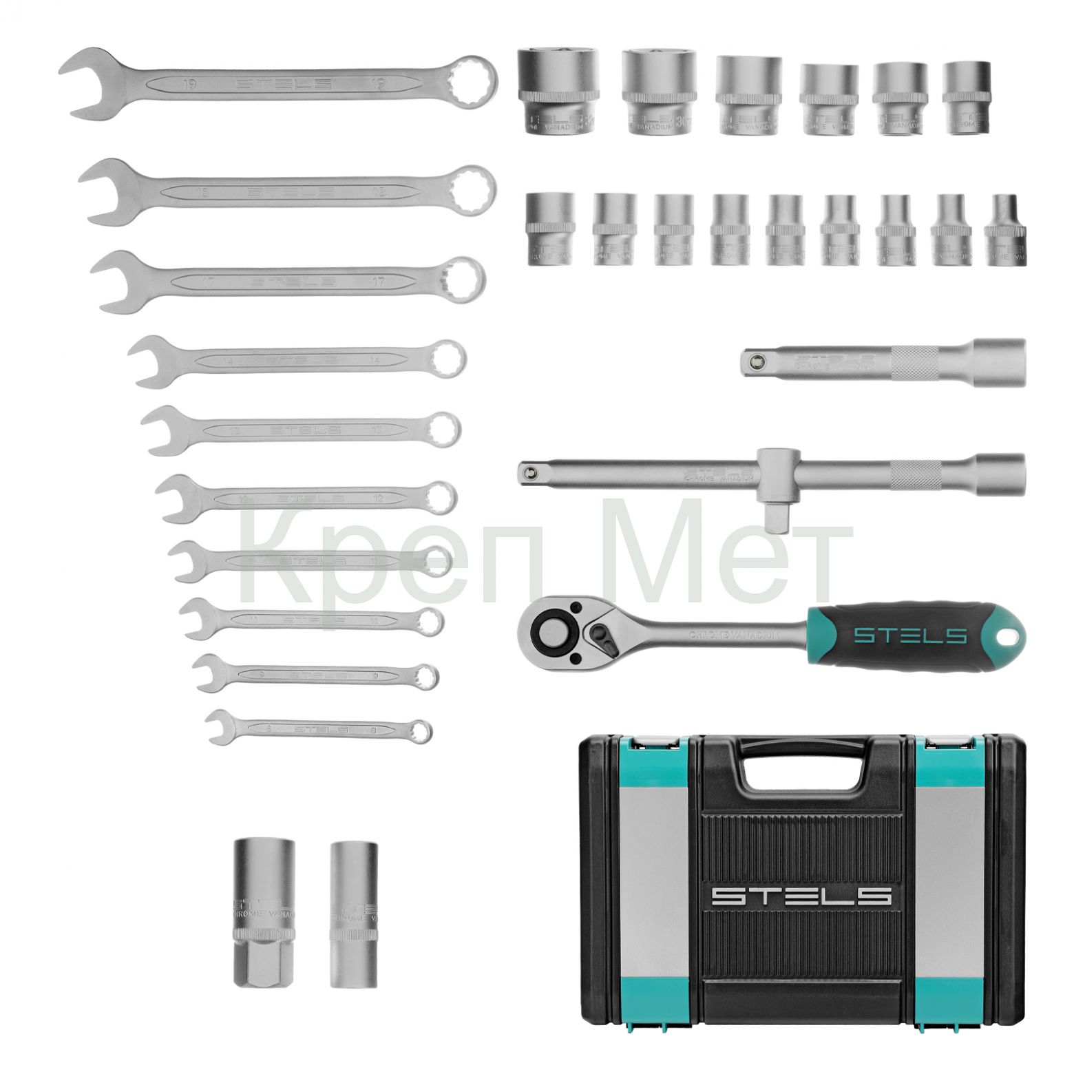 - Набор инструментов, 1/2", CrV, пластиковый кейс 31 предмет Stels
