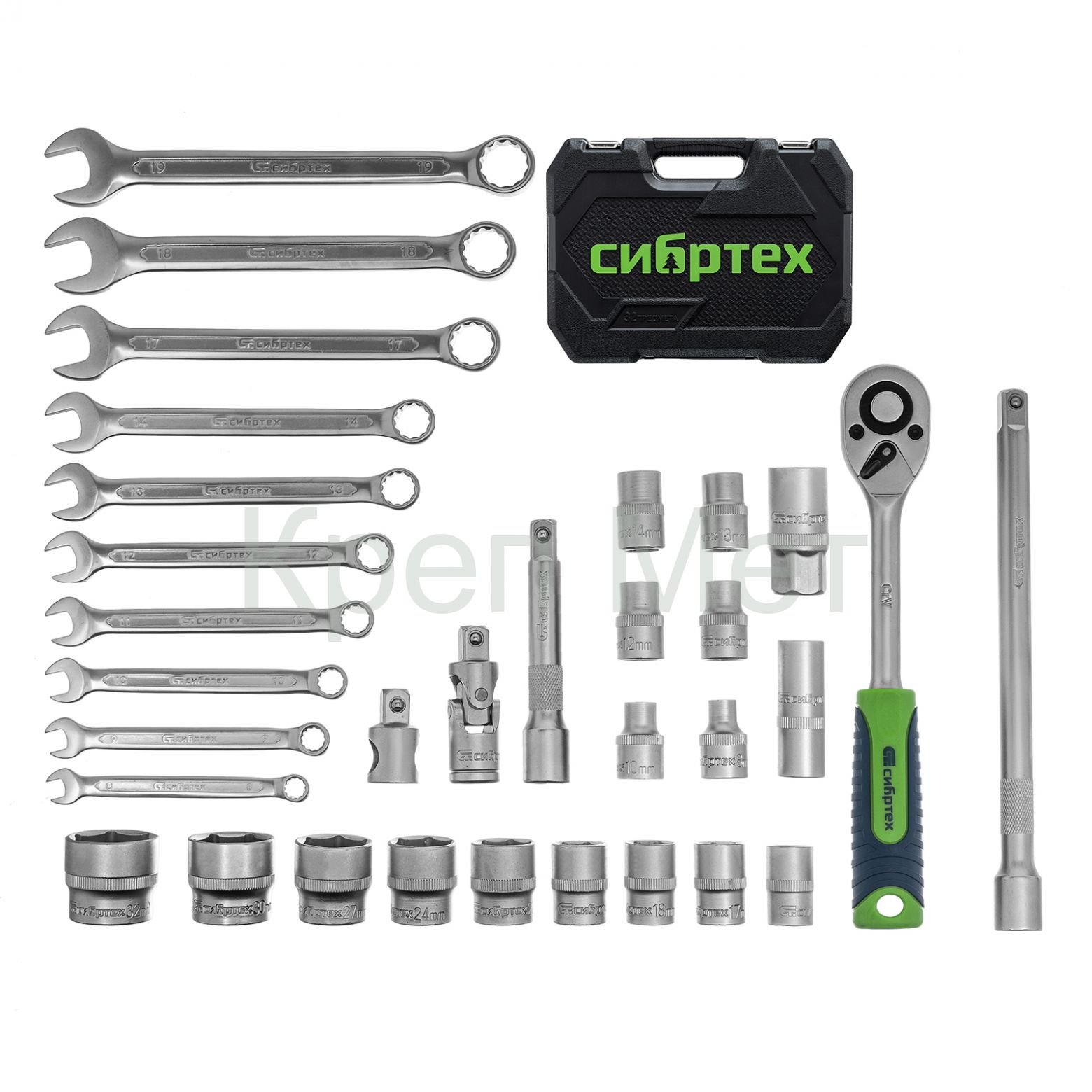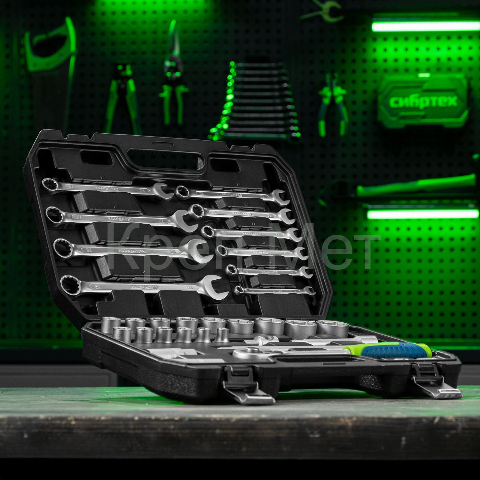 - Набор инструментов, 1/2", пластиковый кейс, 32 предмета// Сибртех