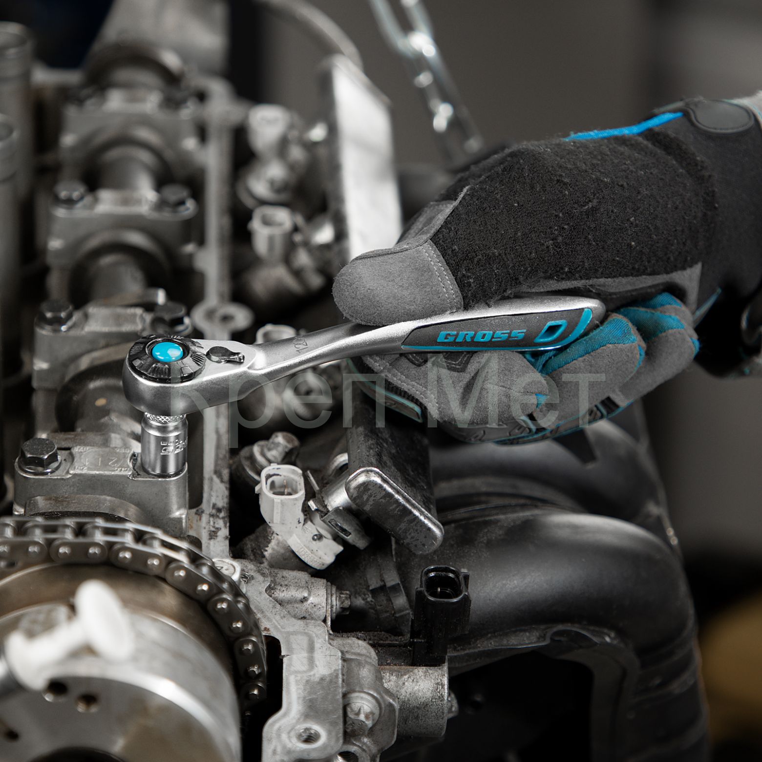 - Комфортный захват — благодаря антискользящим насечкам даже влажные или замасленные удлинители и торцевые головки не выскальзывают из рук.