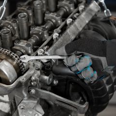 - Работа со значительным усилием — гаечные ключи с дополнительным ребром жесткости на корпусе и цельнокованые трещотки выдерживают высокие нагрузки.
