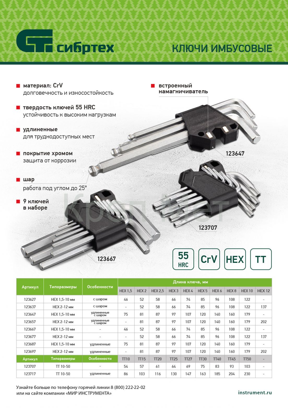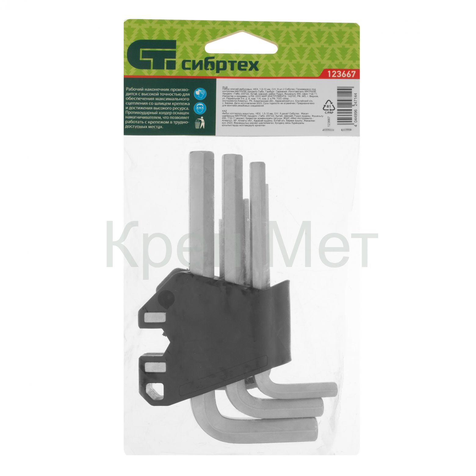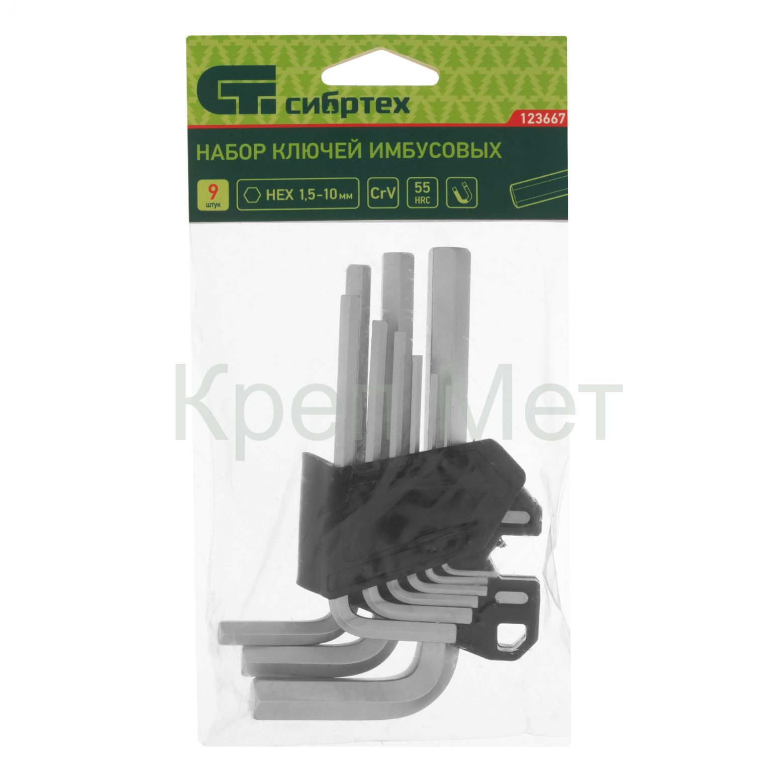 - Набор ключей имбусовых, HEX, 1,5-10 мм, CrV, 9 шт. Сибртех
