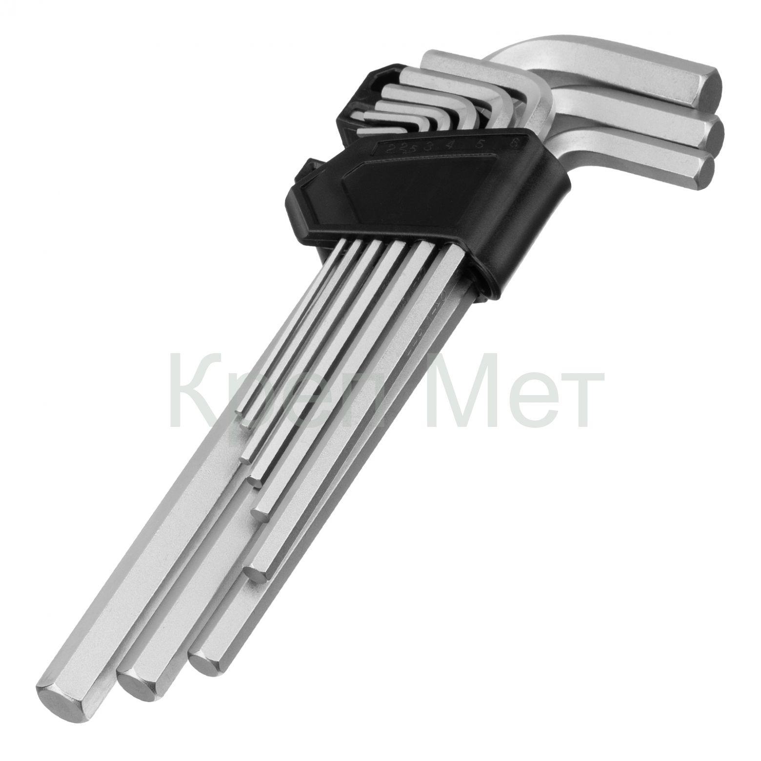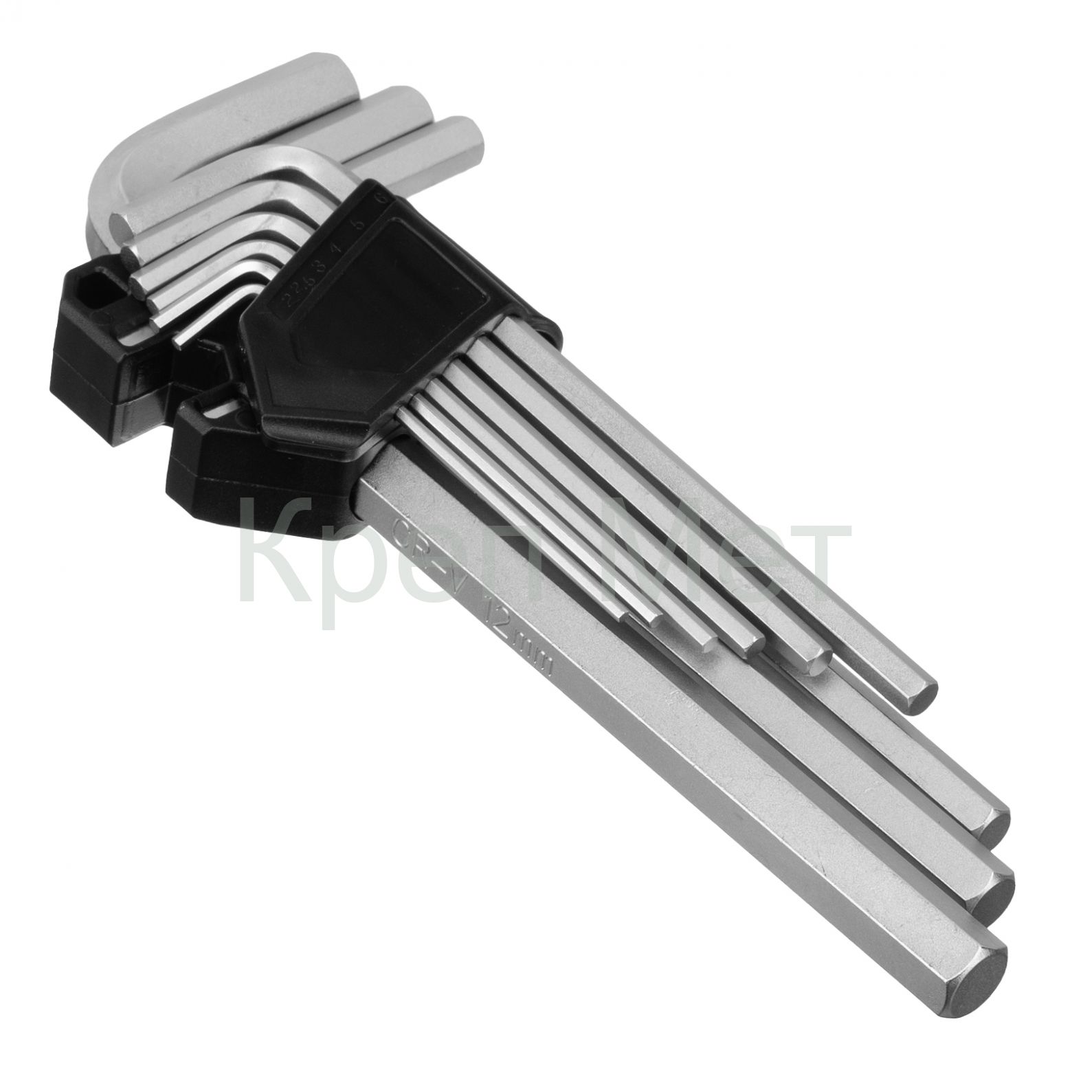 - Набор ключей имбусовых, HEX, 2-12 мм, CrV, 9 шт., удлиненные Сибртех