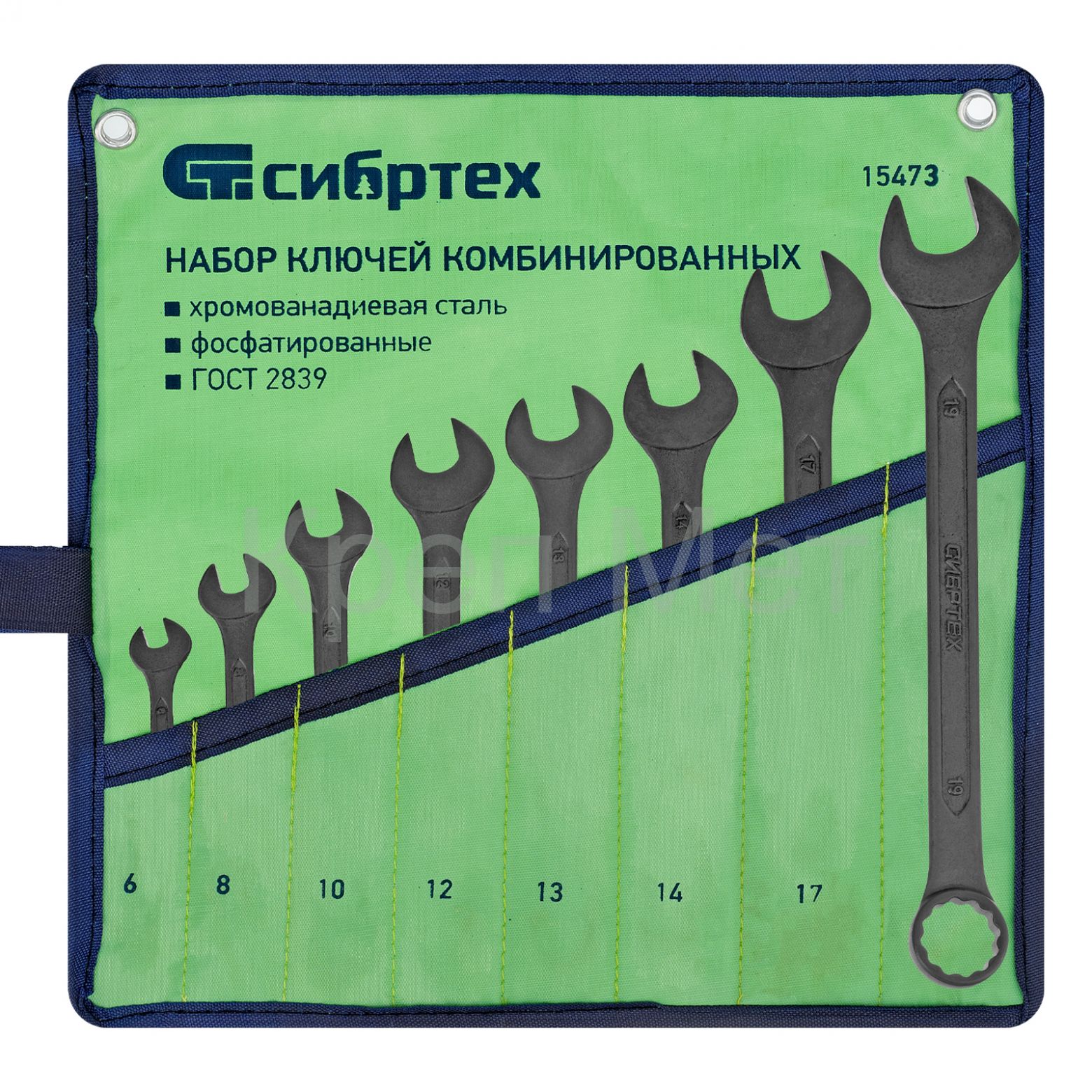 Набор ключей комбинированных, 6 - 19 мм, 8 шт., CrV, фосфатированные Сибртех