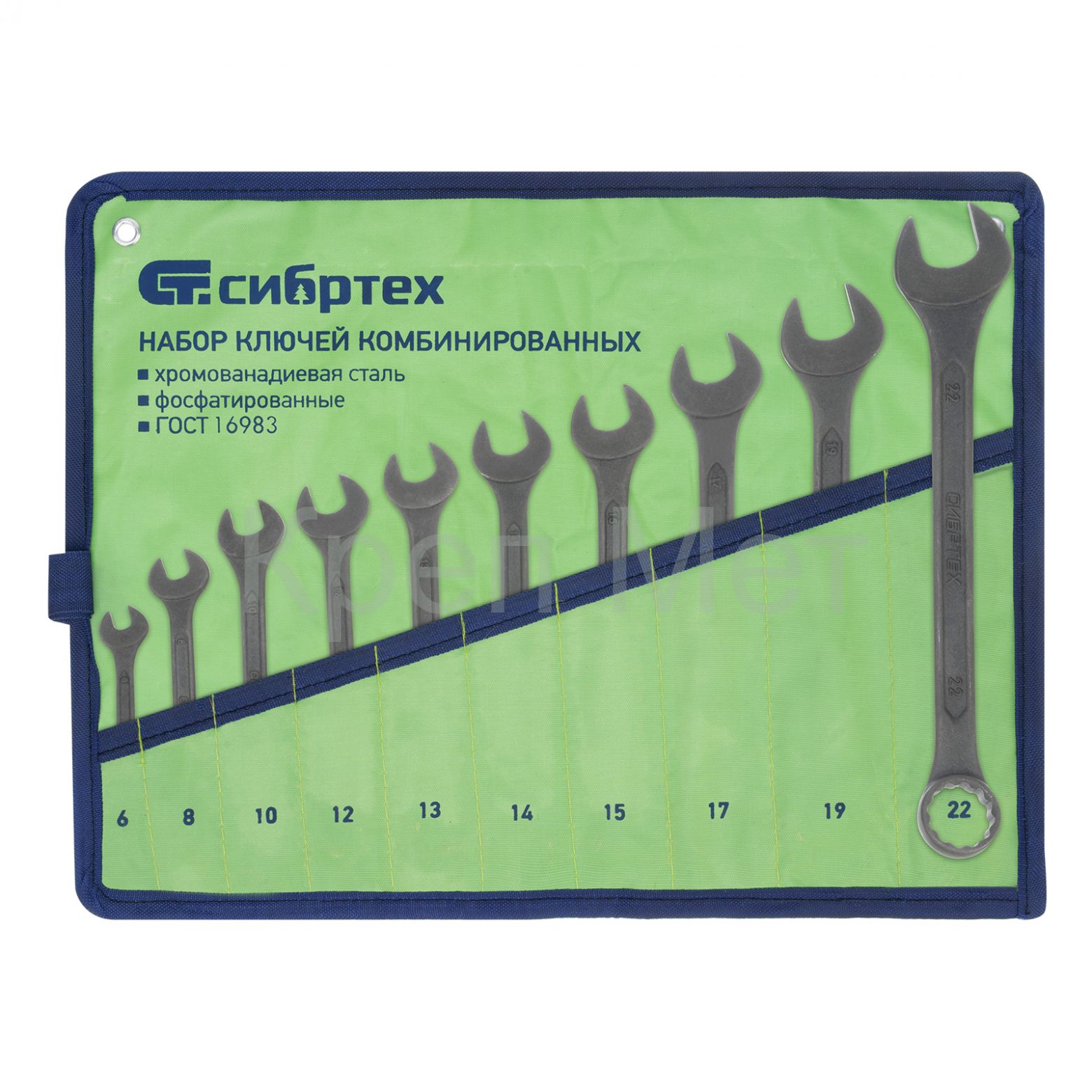 - Набор ключей комбинированных, 6 - 22 мм, 10 шт., CrV, фосфатированные Сибртех