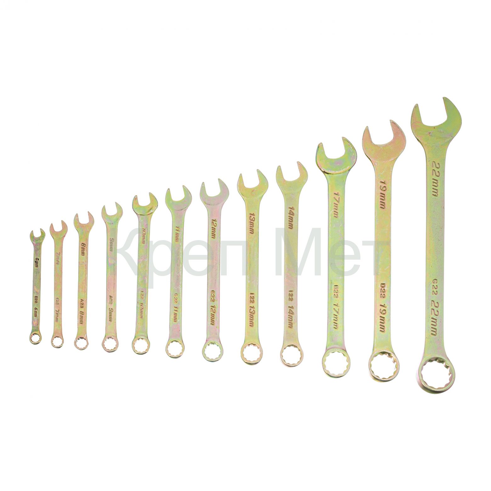 Набор ключей комбинированных - 12 шт, типоразмеры - 6, 7, 8, 9, 10, 11, 12, 13, 14, 17, 19, 22