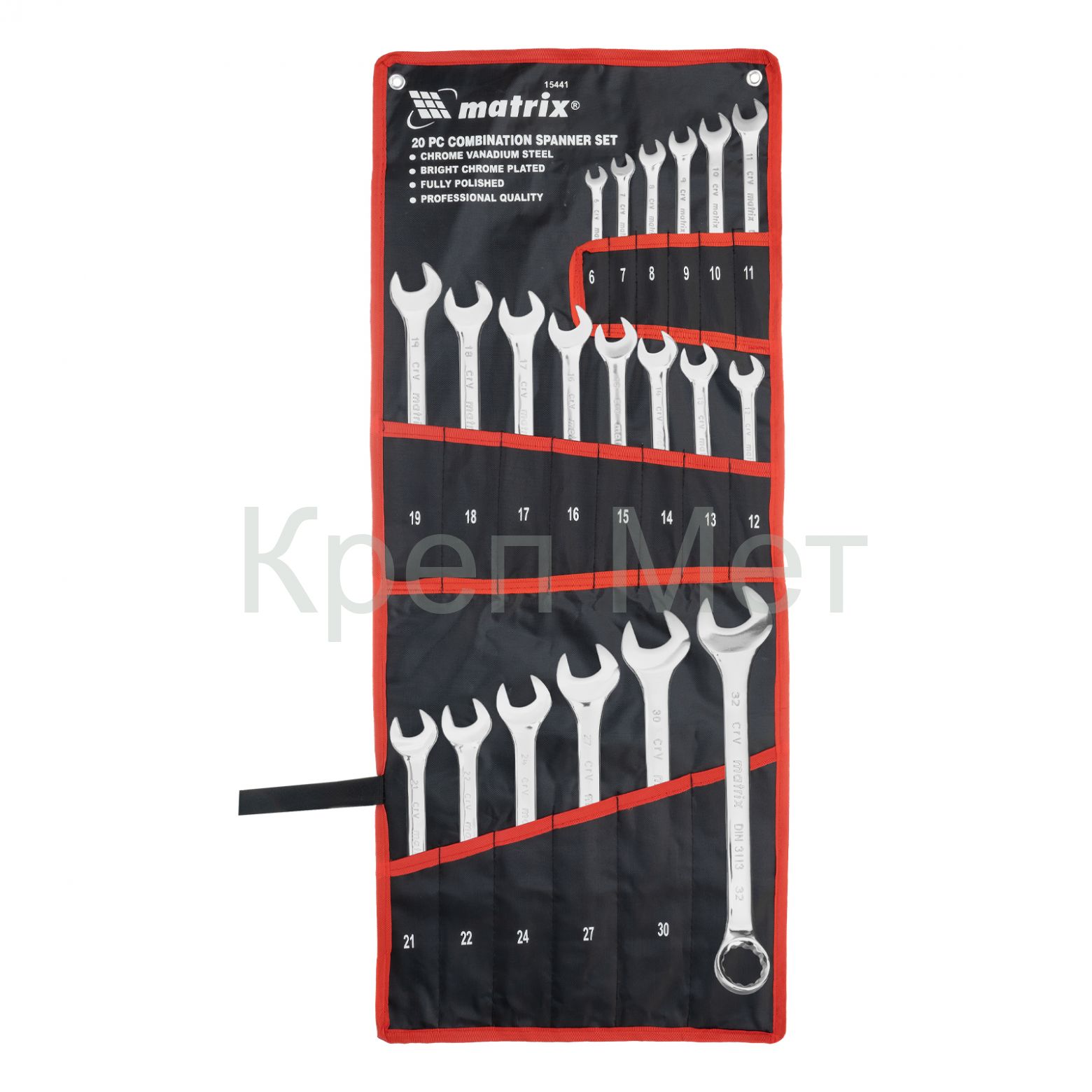 Набор ключей комбинированных 6-32 мм, 20 шт, CrV, полированный хром Matrix