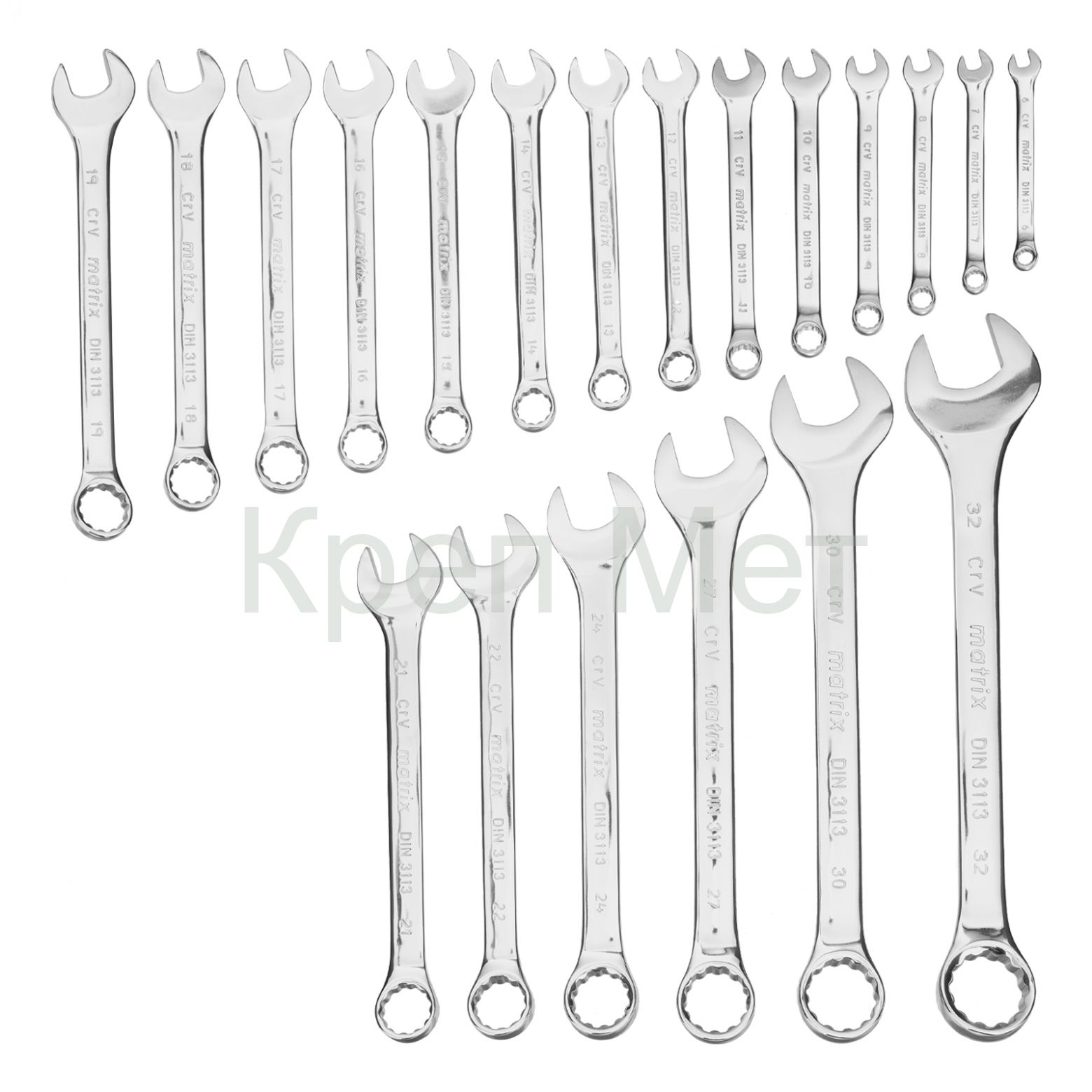 - Набор ключей комбинированных 6-32 мм, 20 шт, CrV, полированный хром Matrix
