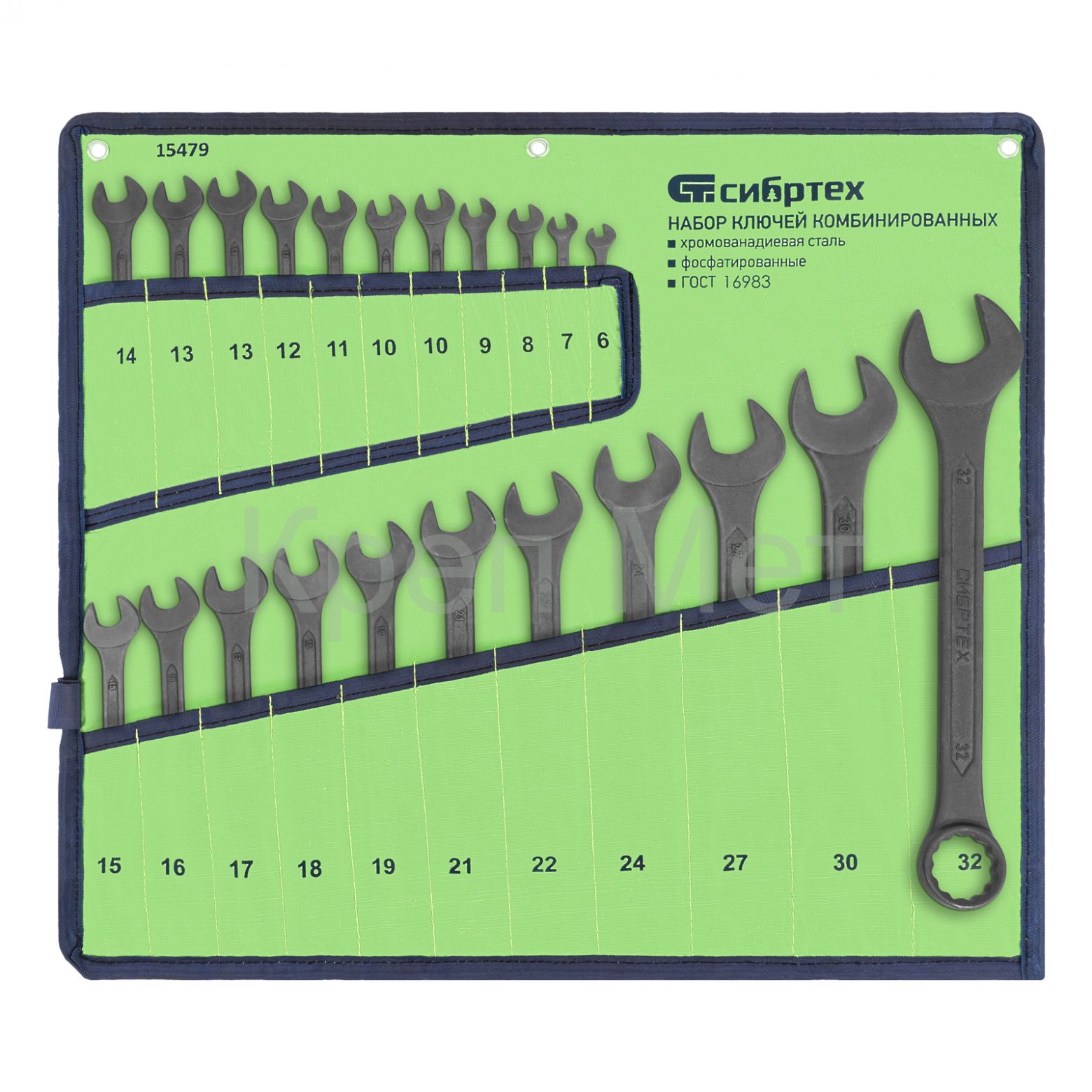 - Набор ключей комбинированных, 6 - 32 мм, 22 шт., CrV, фосфатированные Сибртех