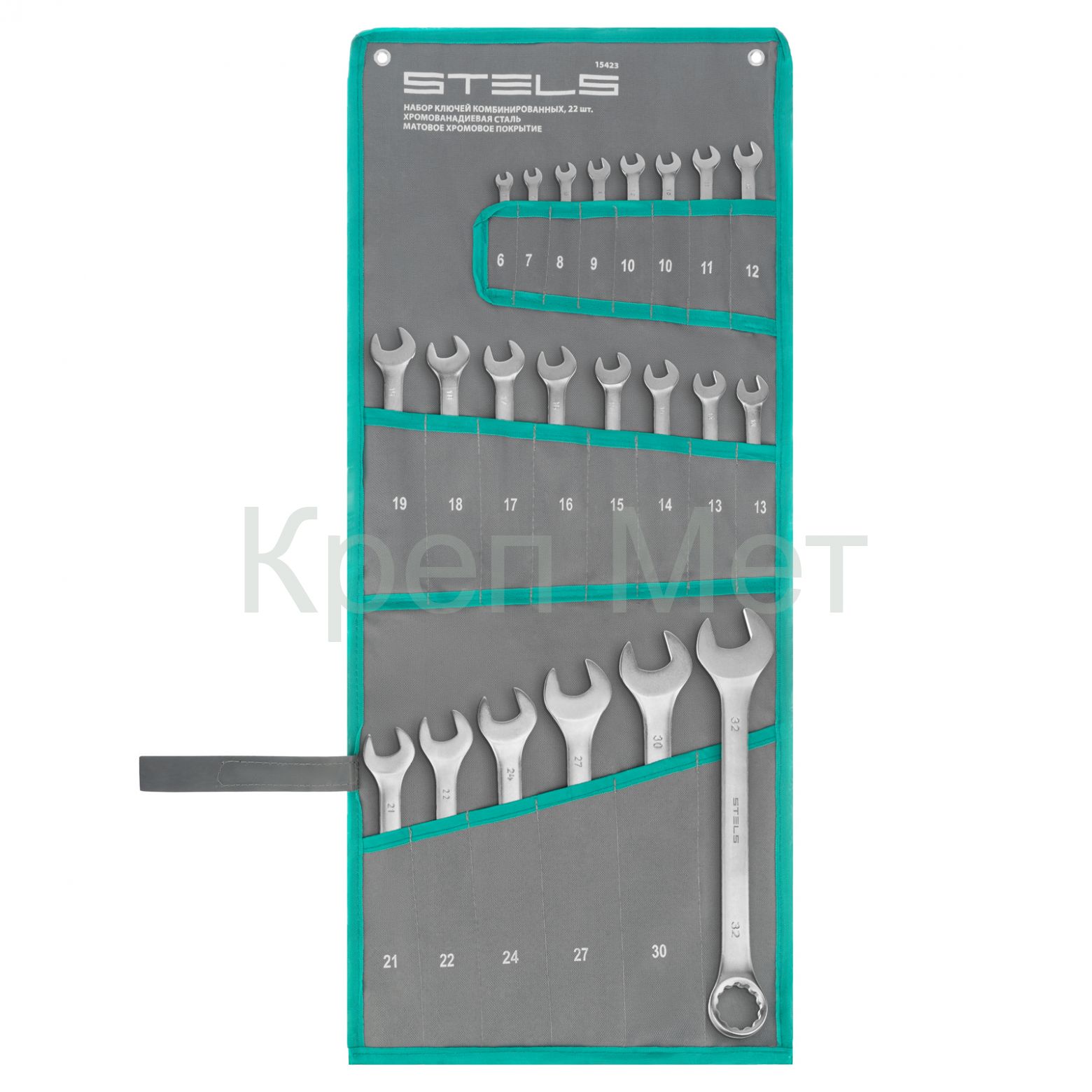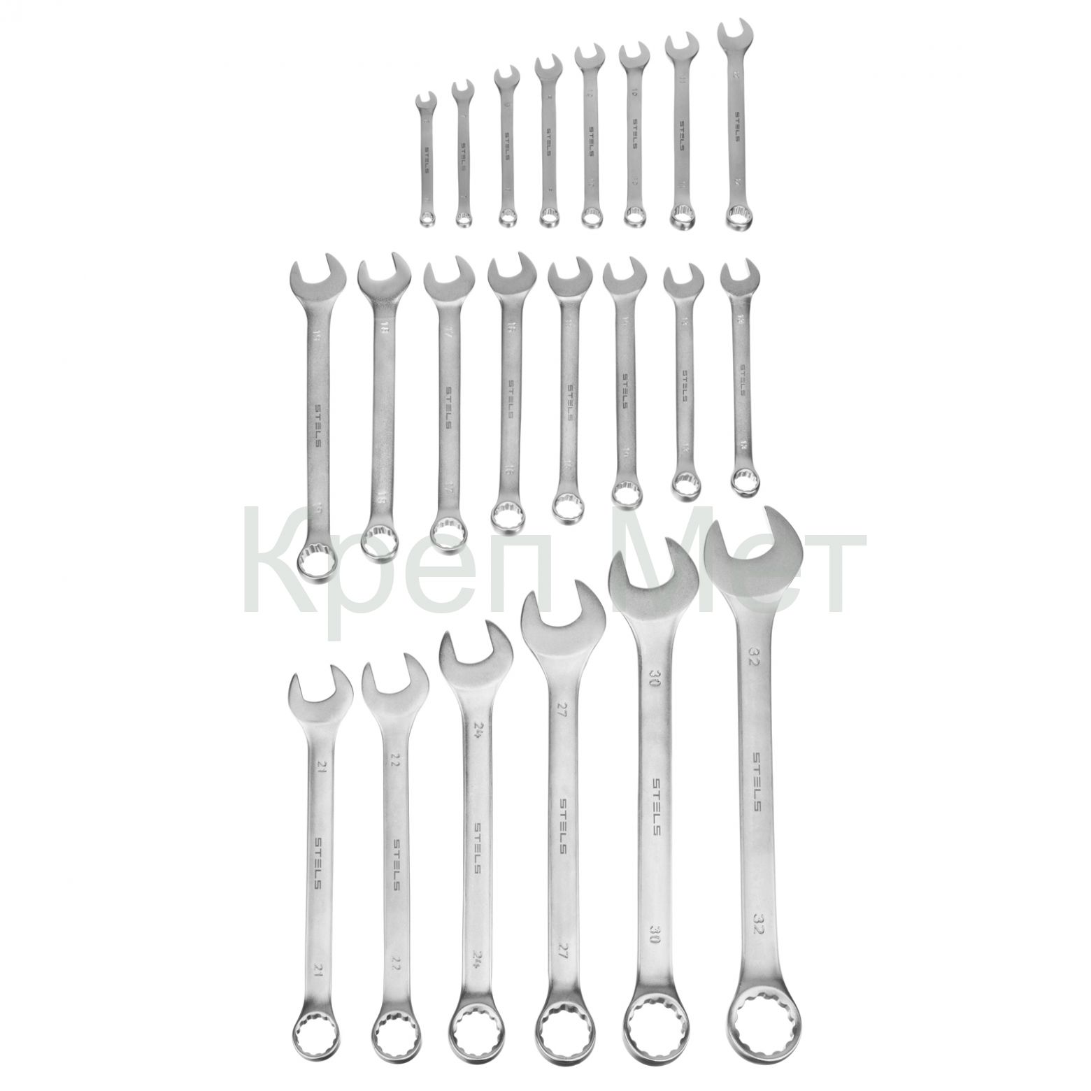 - Набор ключей комбинированных 6-32 мм, 22 шт, CrV, матовый хром Stels