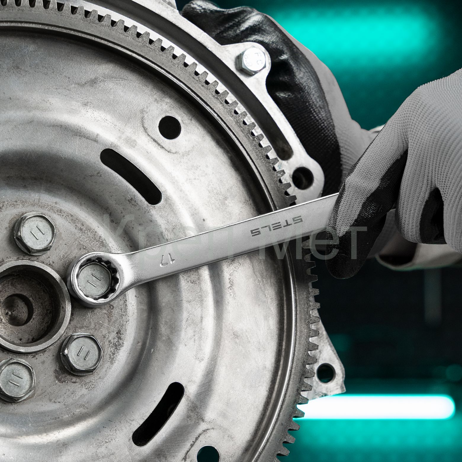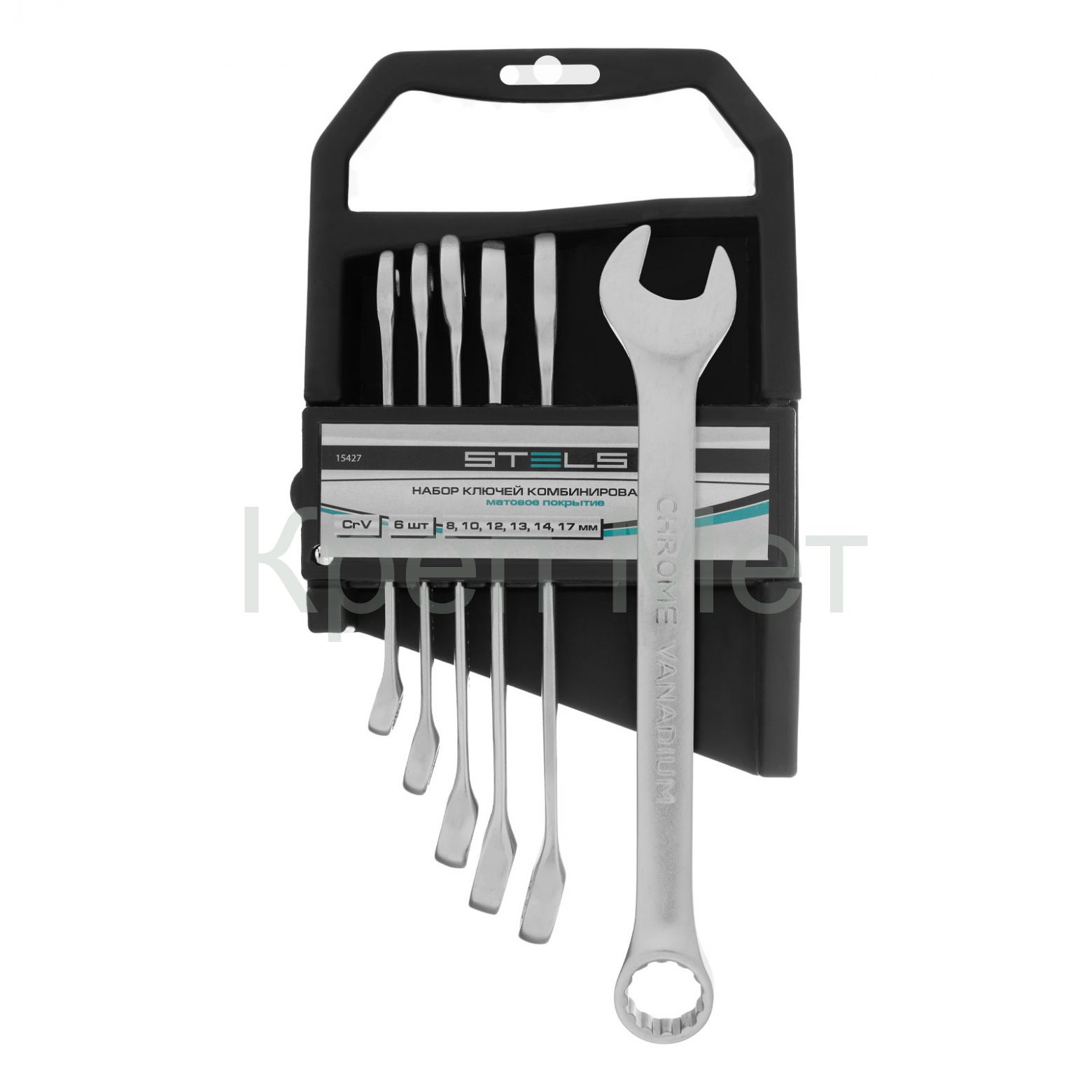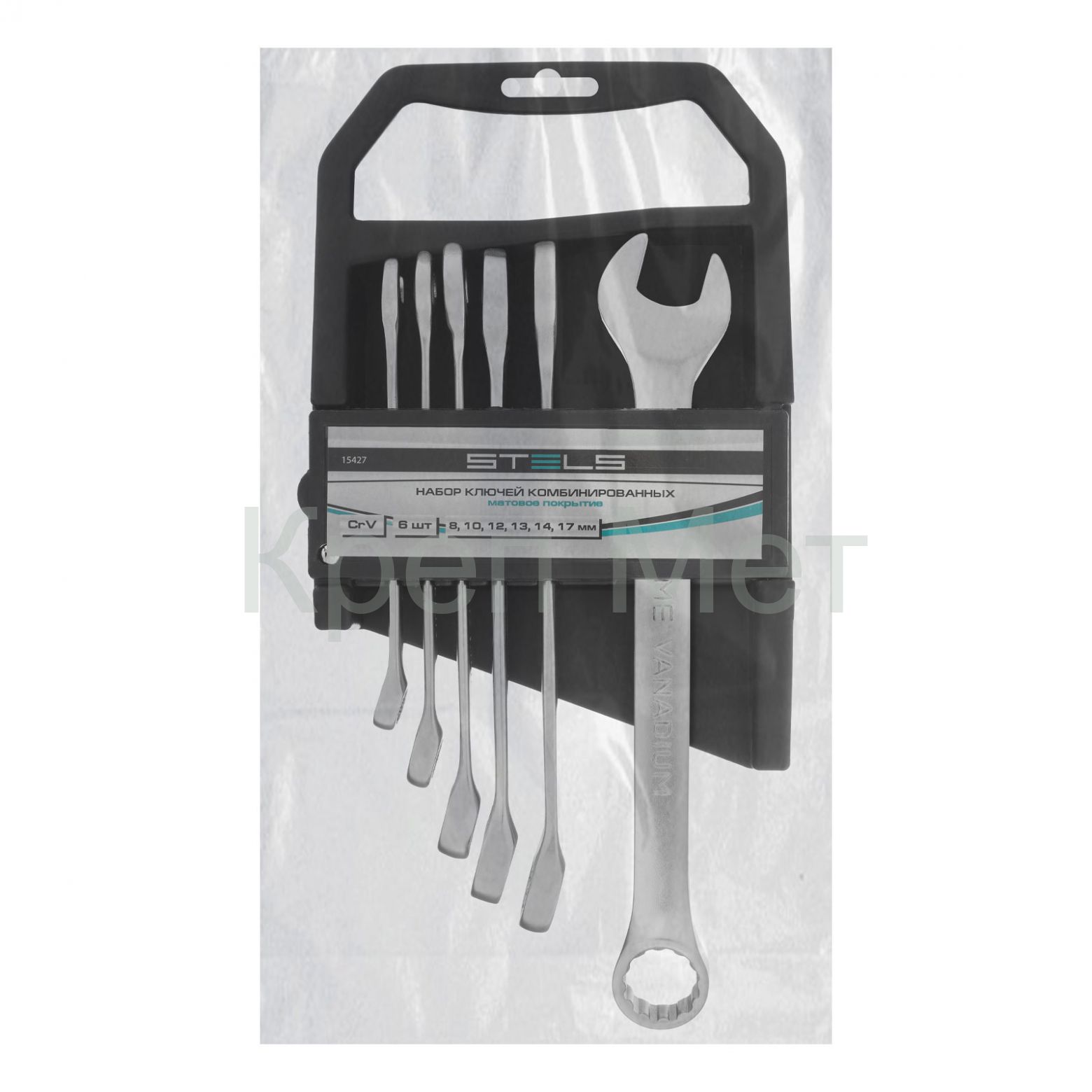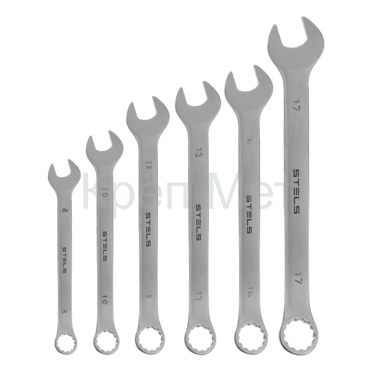 - Набор ключей комбинированных, 8-17 мм, 6 шт, CrV, матовый хром Stels