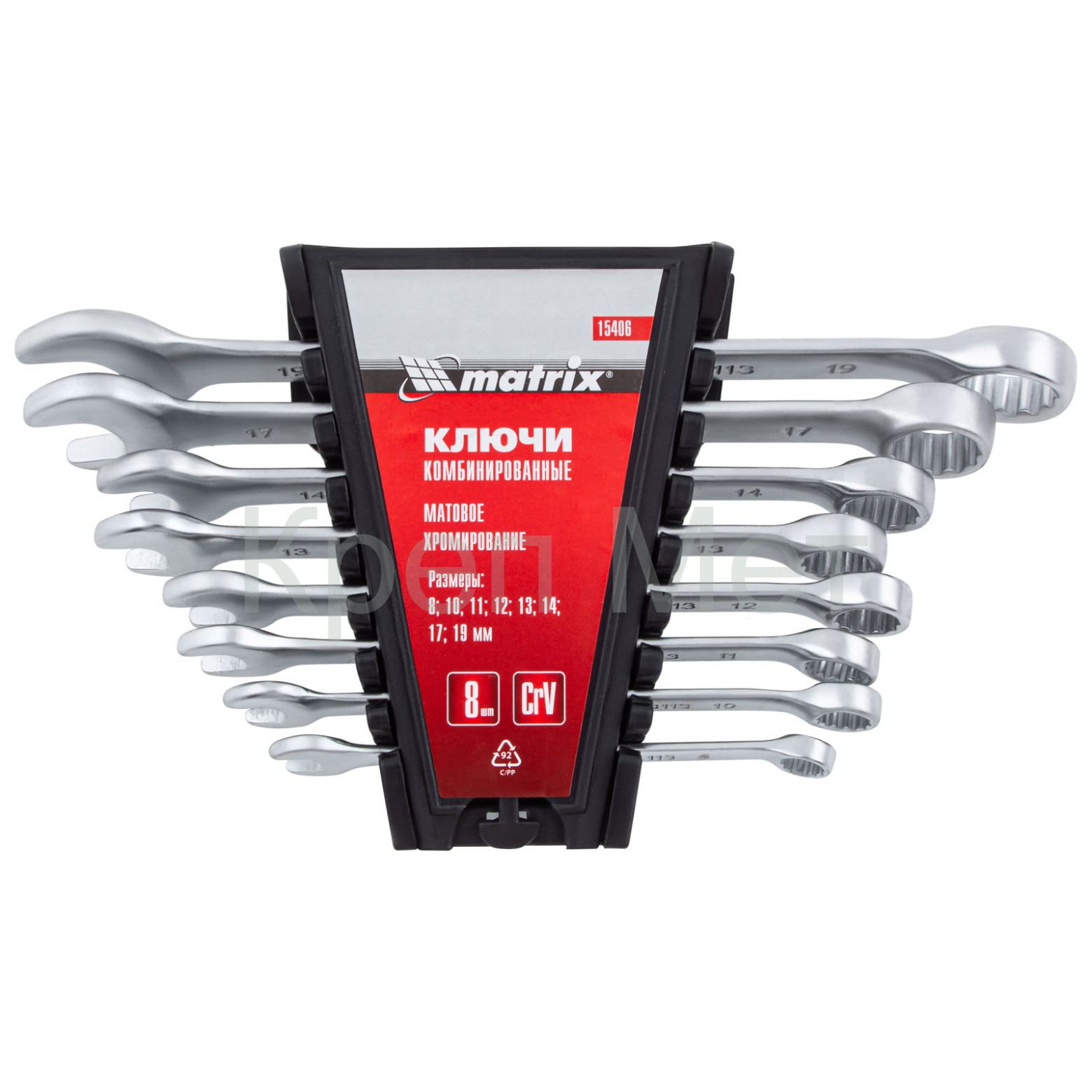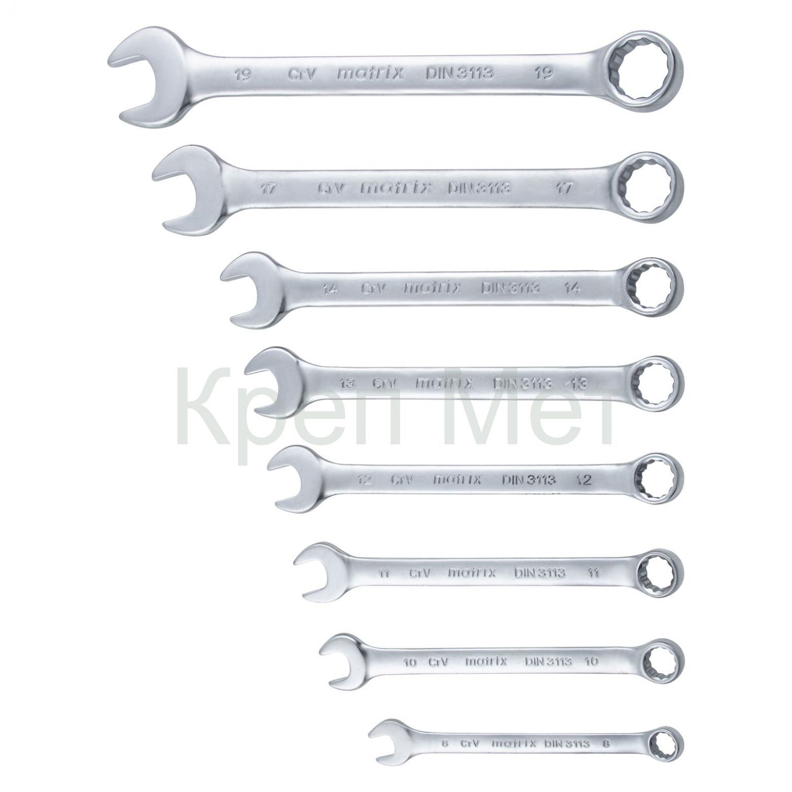 - Набор ключей комбинированных, 8-19 мм, 8 шт, CrV, матовый хром Matrix