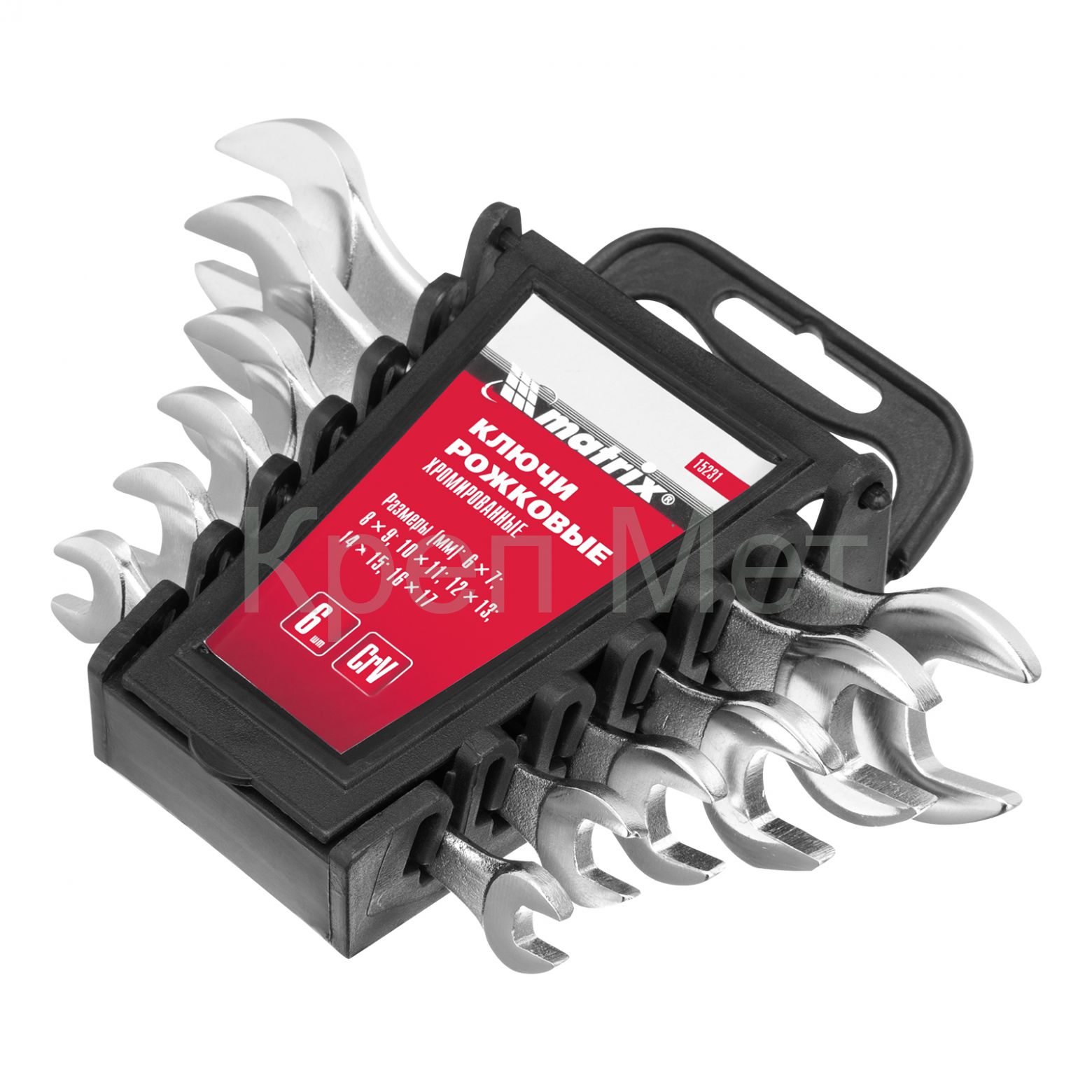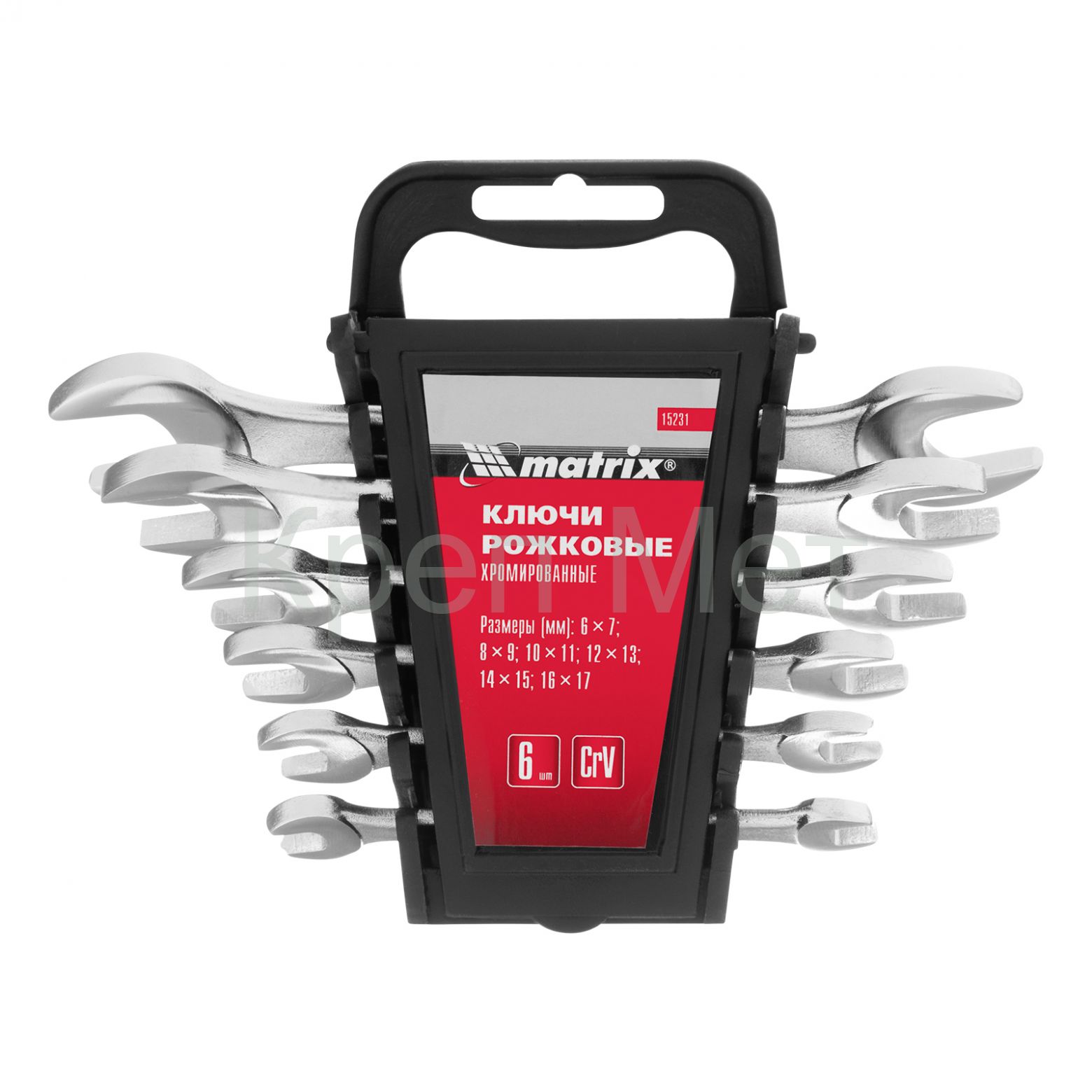 - Набор ключей рожковых, 6-17 мм, 6 шт, CrV, хромированные Matrix