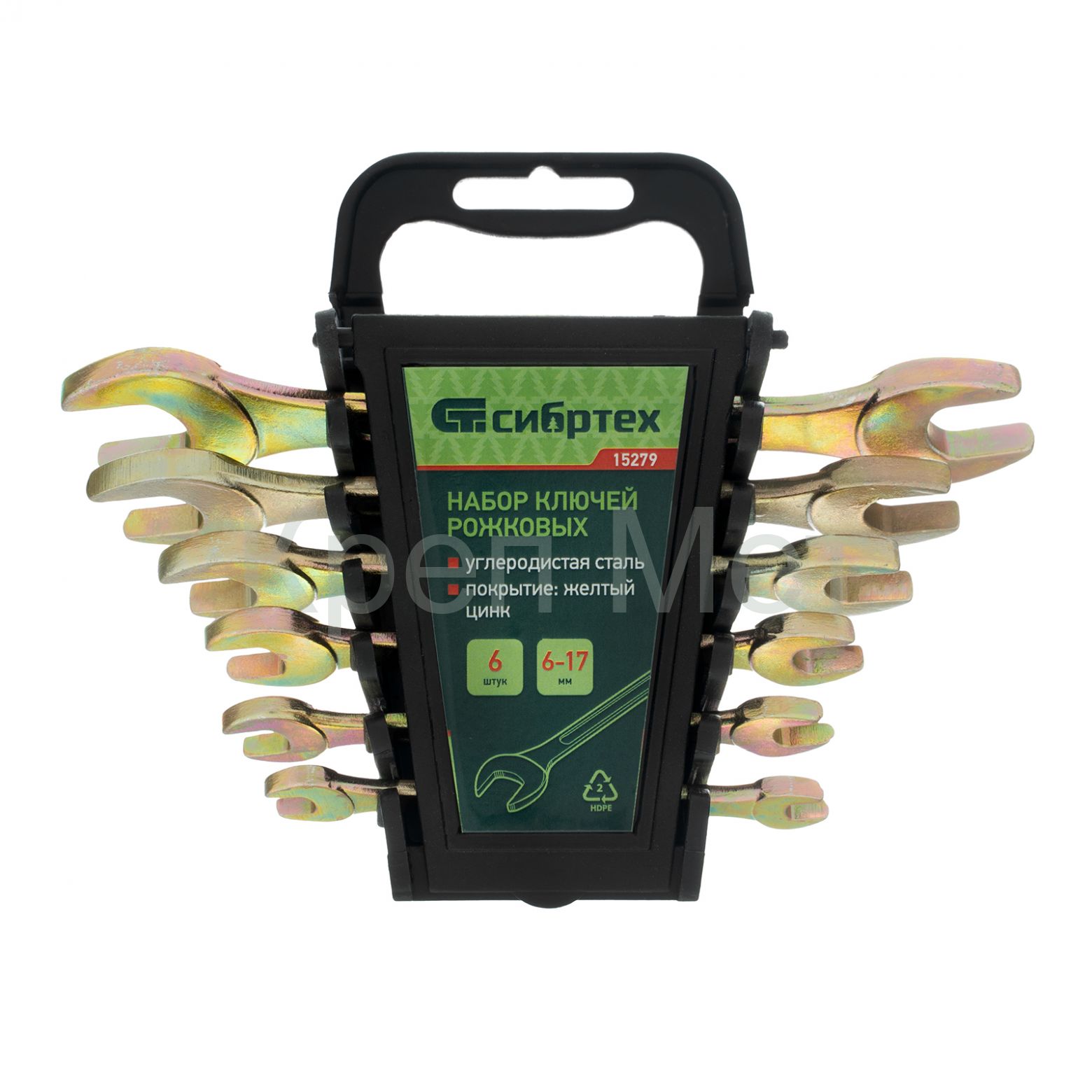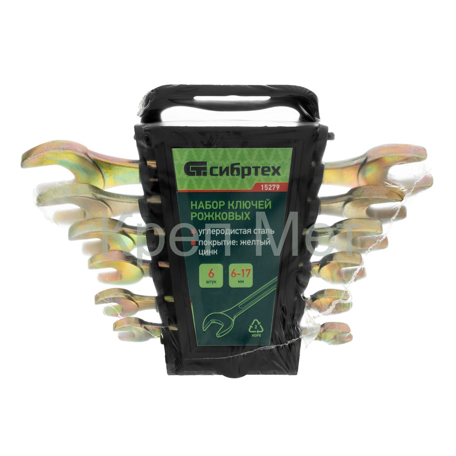 Набор ключей рожковых 6-17 мм, 6 шт, желтый цинк Сибртех