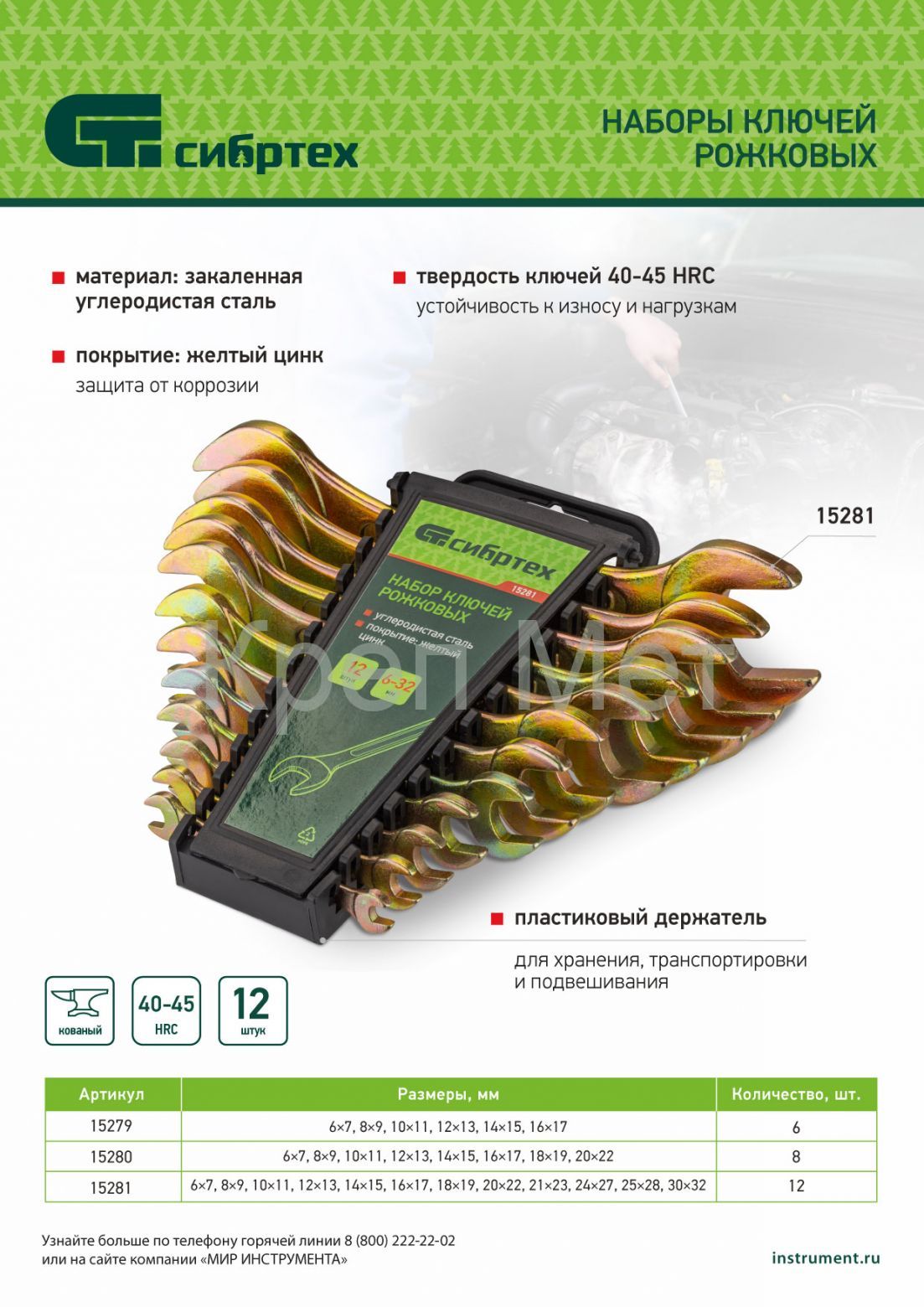 - Набор ключей рожковых 6-17 мм, 6 шт, желтый цинк Сибртех