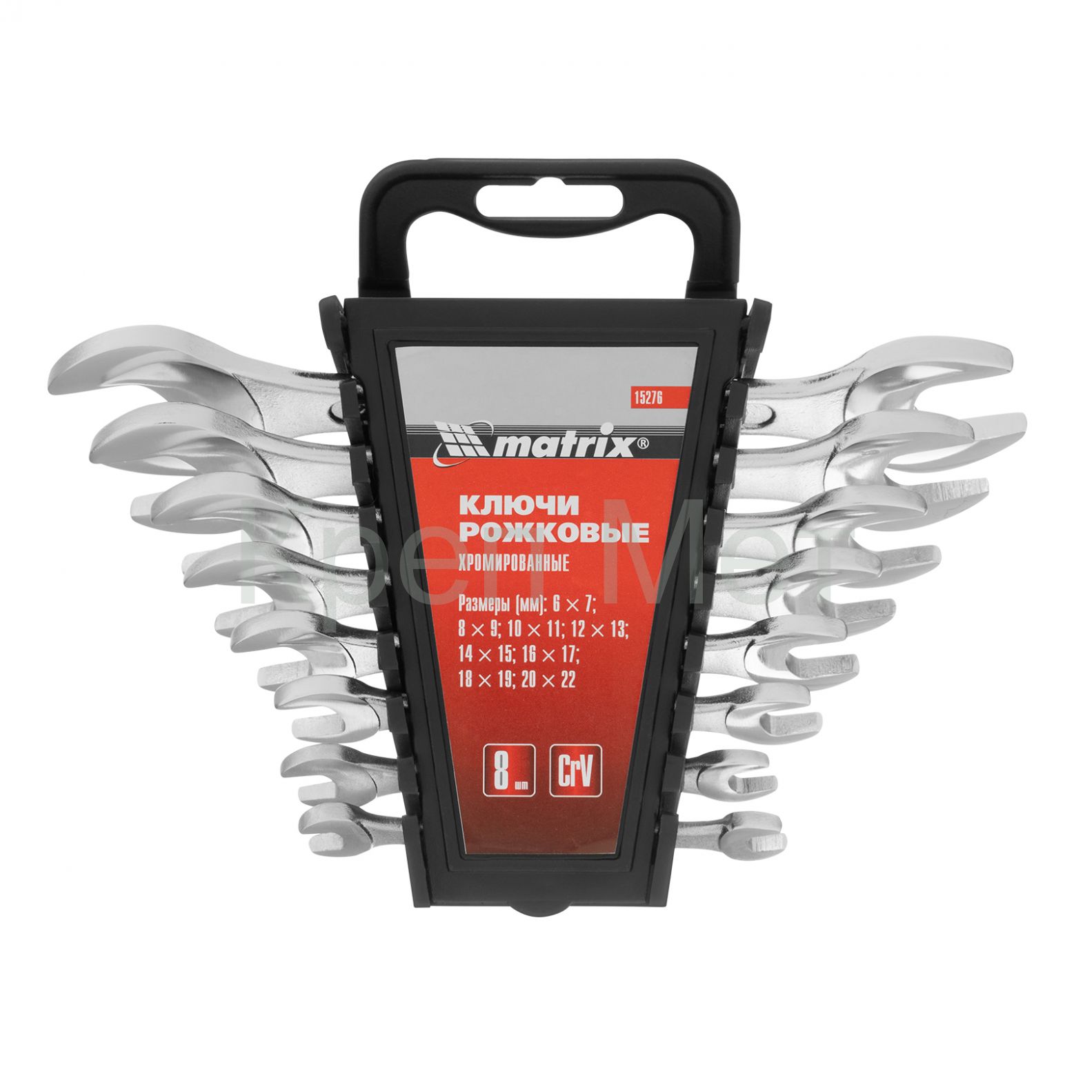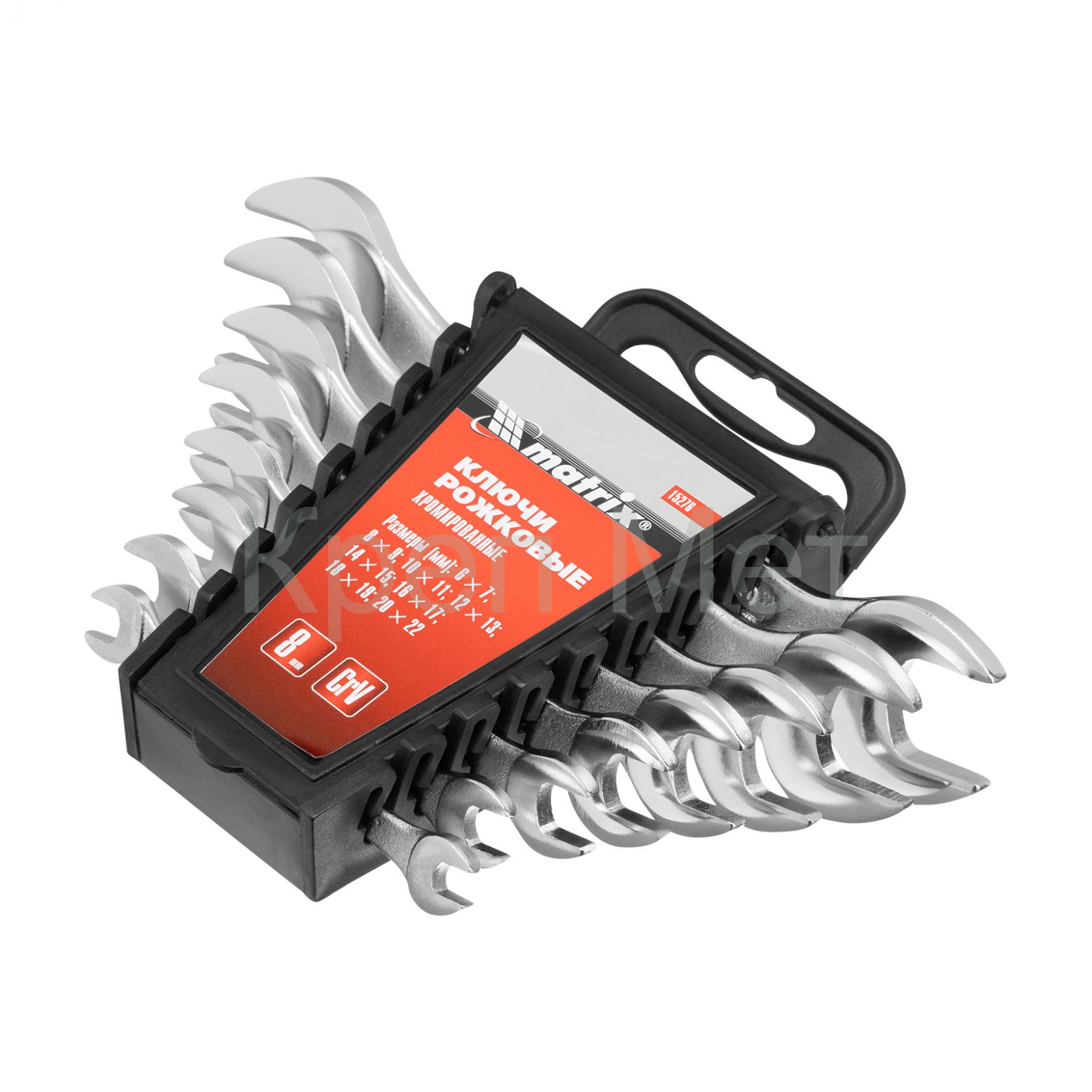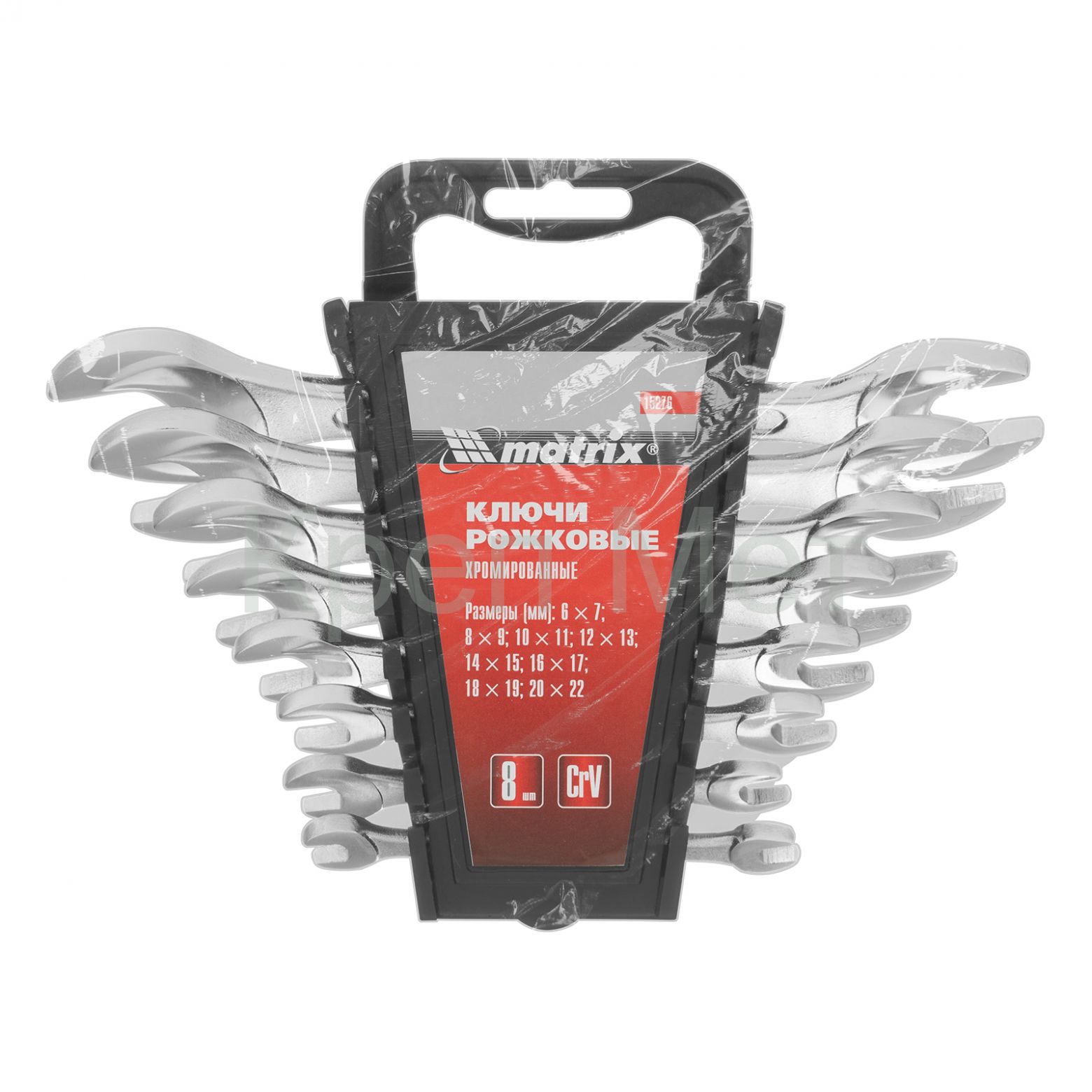 - Набор ключей рожковых, 6-22 мм, 8 шт, CrV, хромированные Matrix