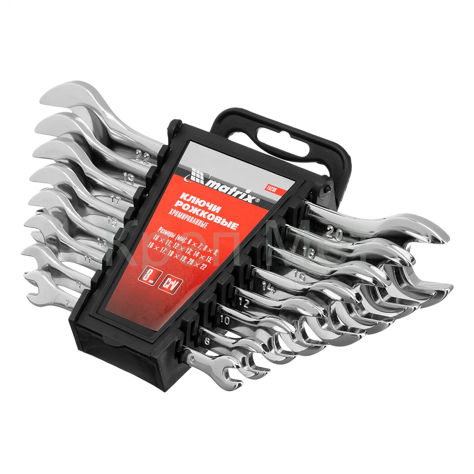 - Набор ключей рожковых 8 шт, 6-22мм, CrV, Elliptical, зеркальное хромирование Matrix