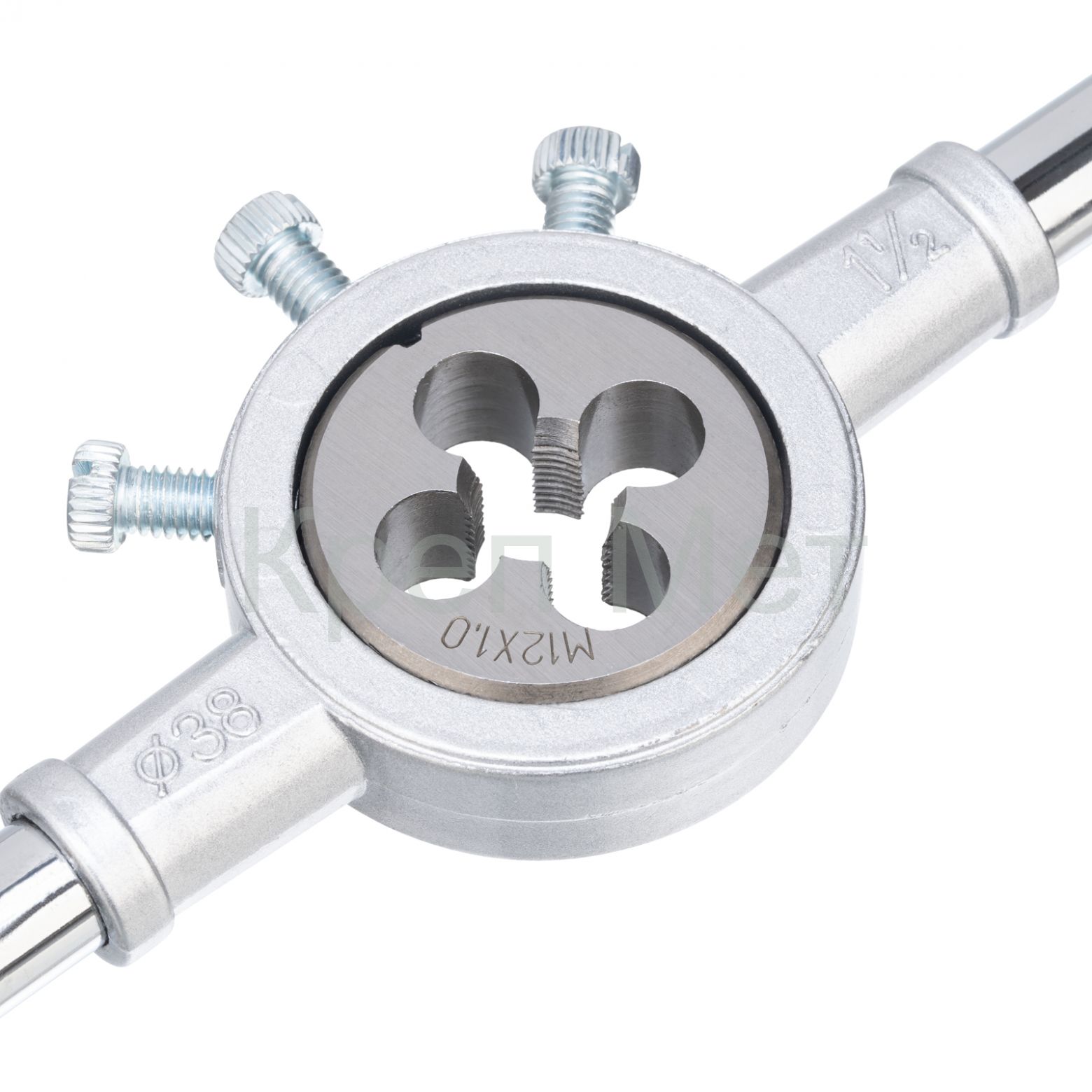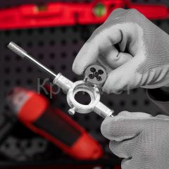 - Точная внешняя резьба — боковые винты плашкодержателей не дают плашкам проворачиваться, количество зубьев на калибрующей части плашек увеличено.