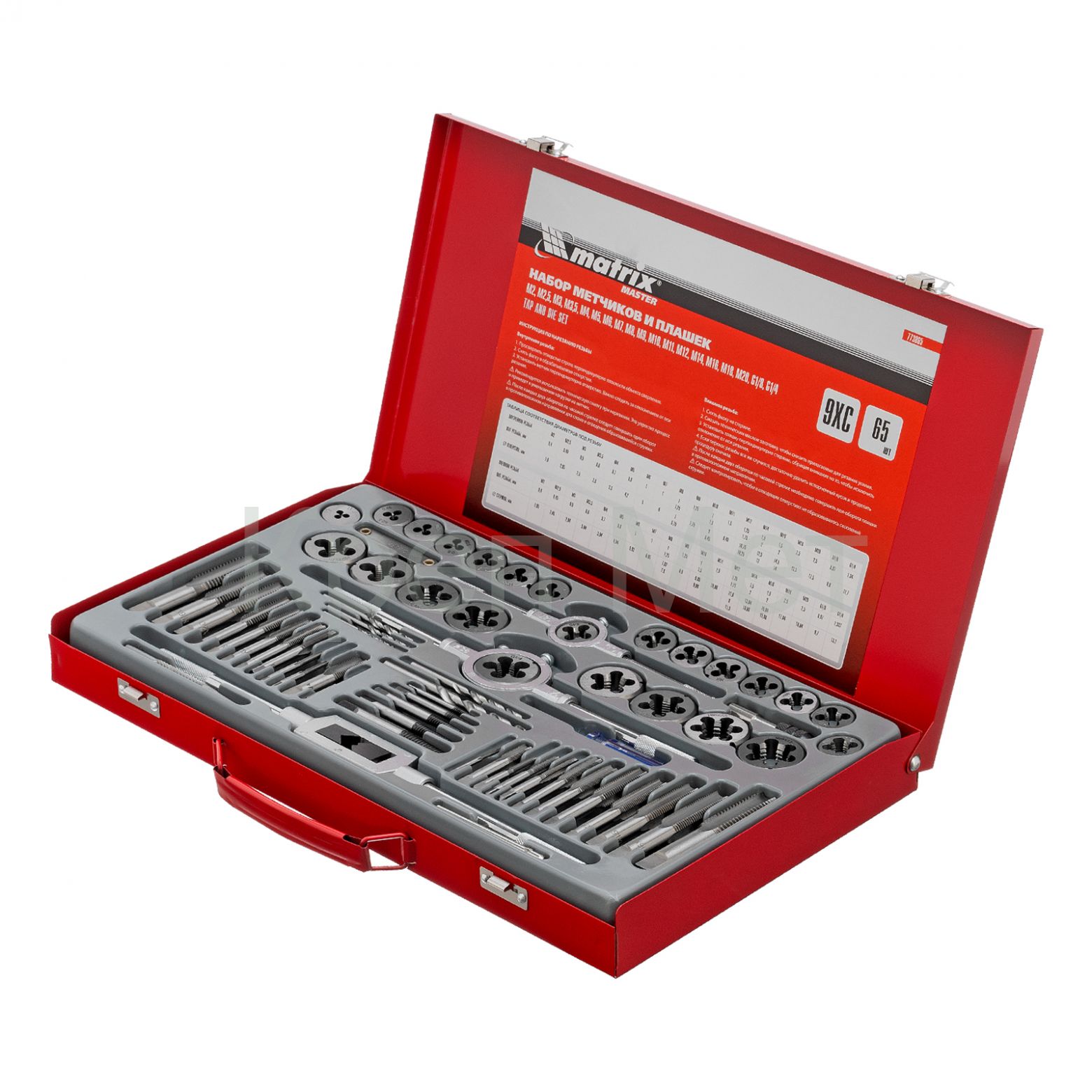 Набор метчиков и плашек М2-М20, 65 шт, металлический кейс Matrix