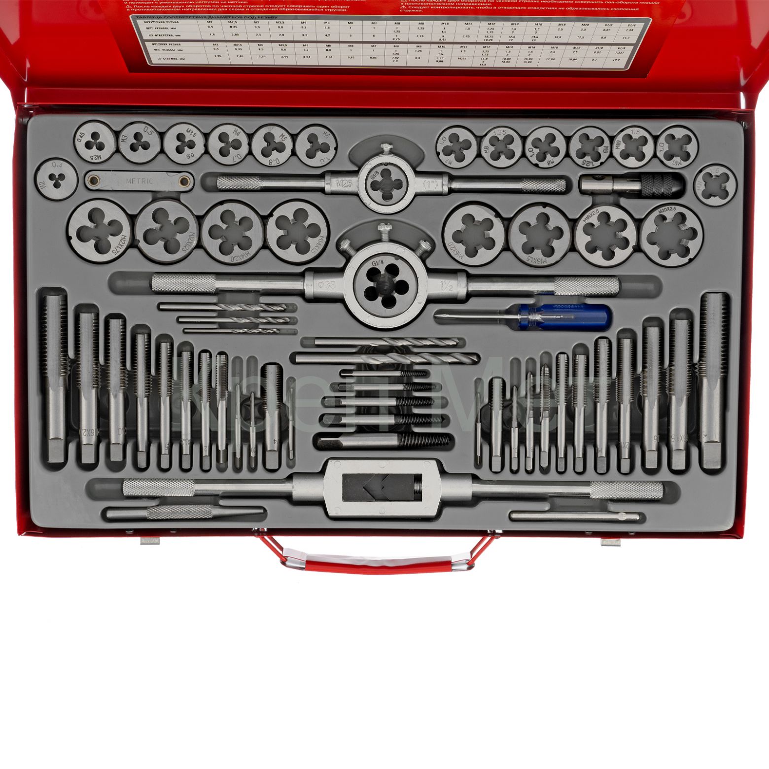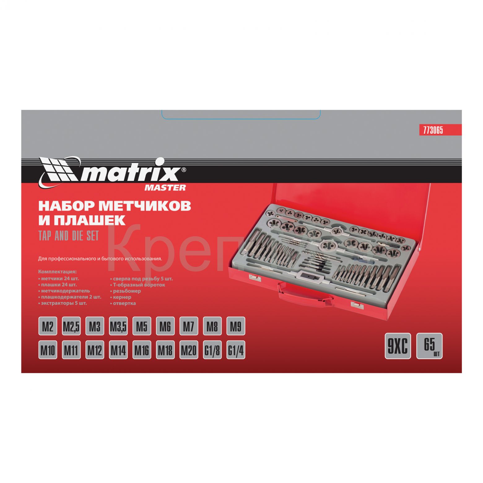 - Набор метчиков и плашек М2-М20, 65 шт, металлический кейс Matrix
