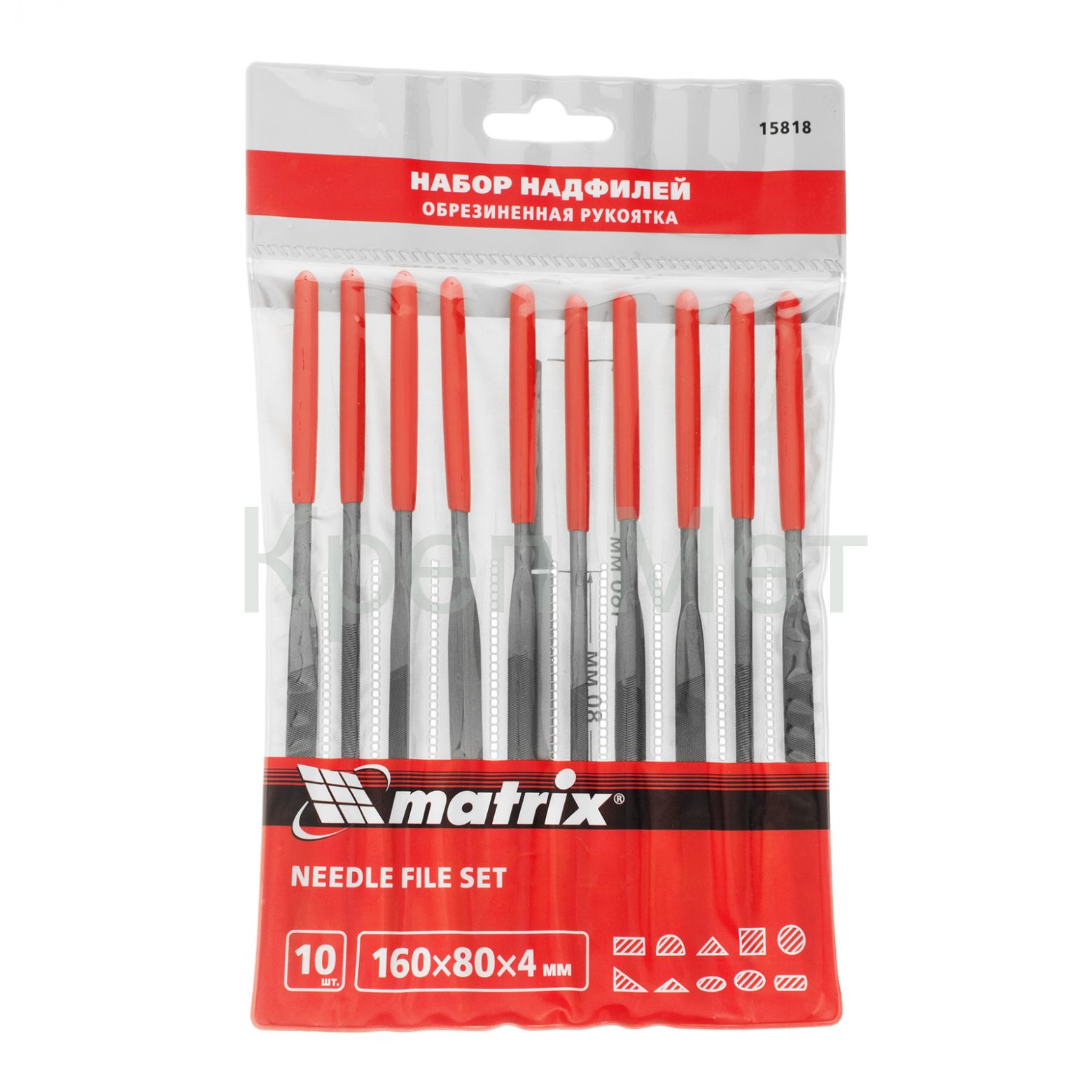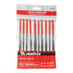 - Набор надфилей, 160 х 4 мм, 10 шт, обрезиненные рукоятки Matrix